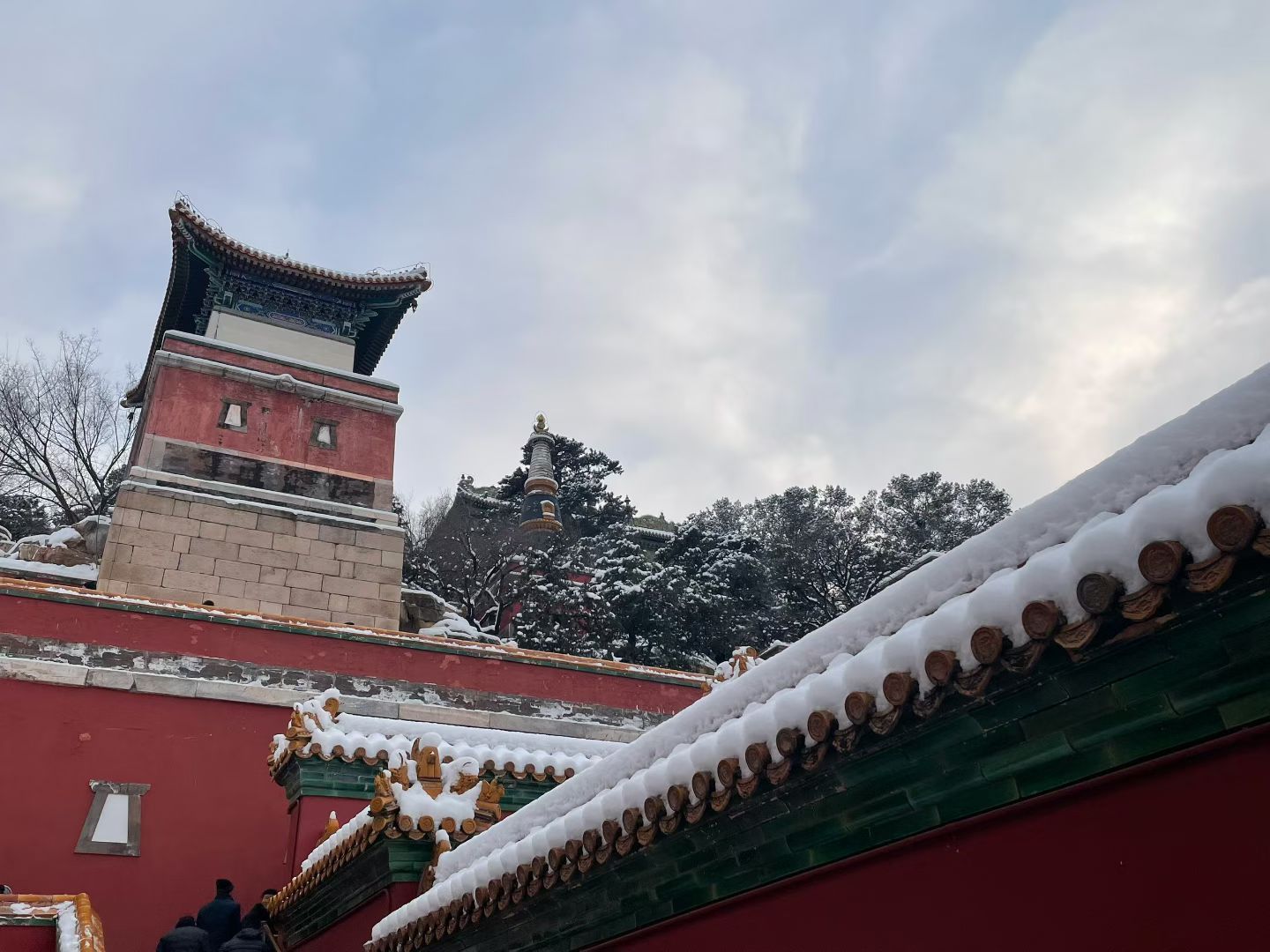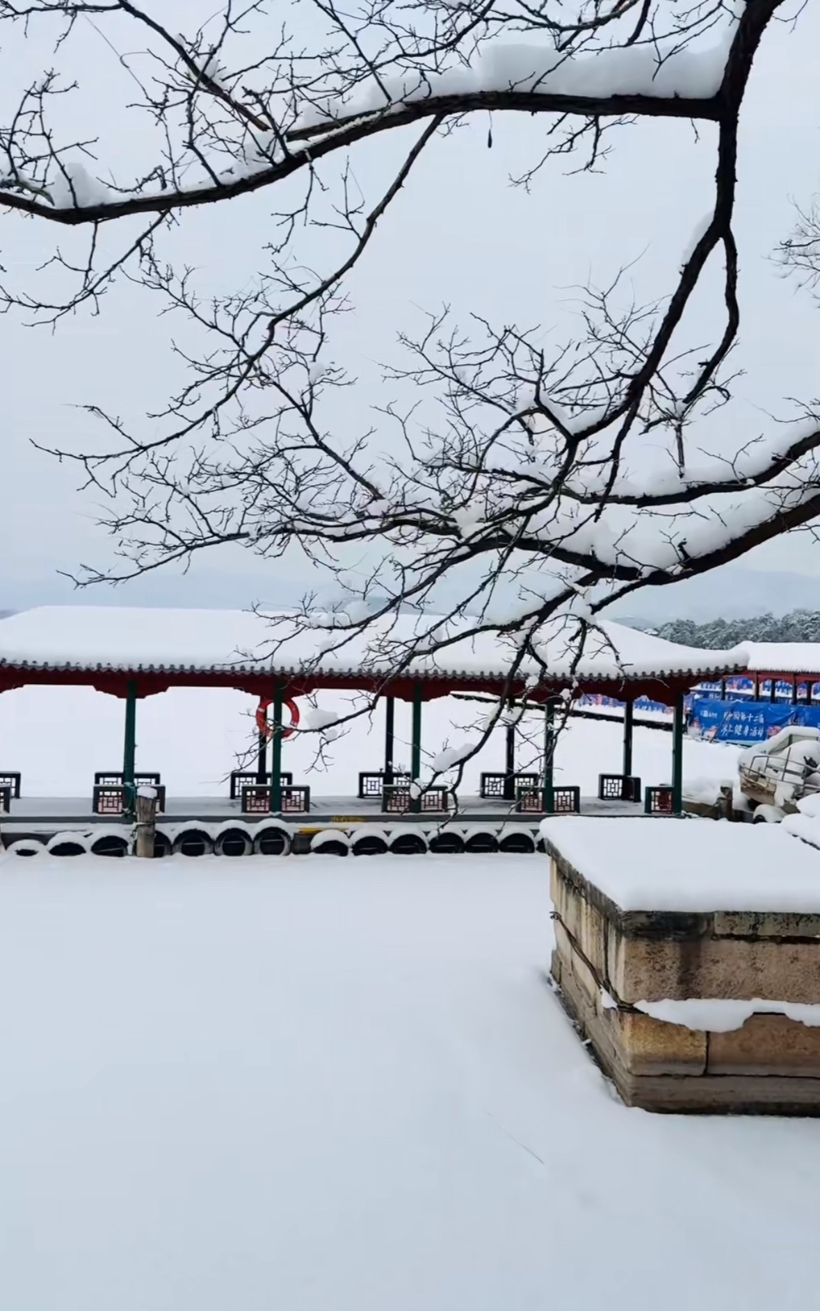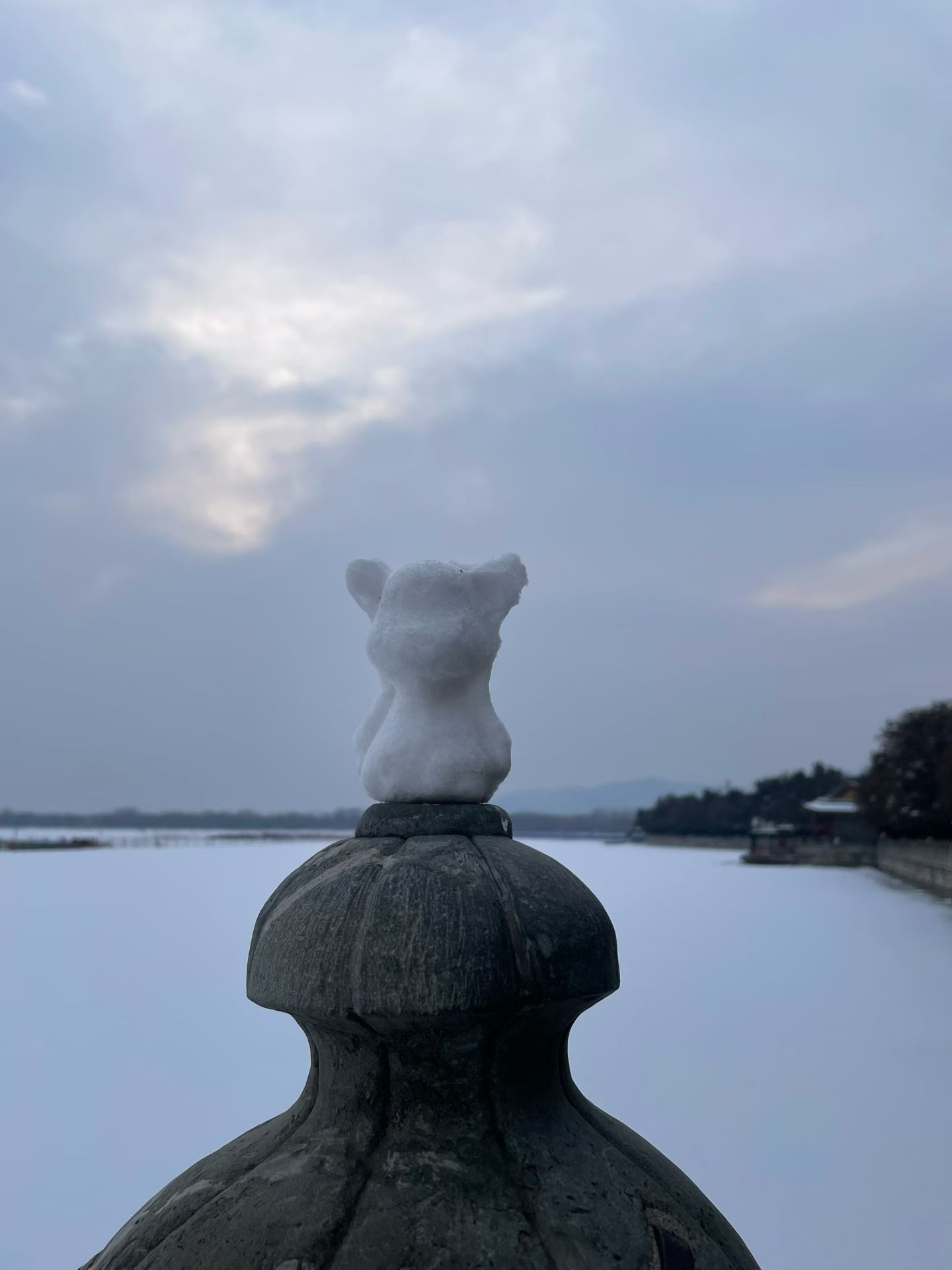 雪裹朱墙,湖封寒玉。佛香阁的檐角挑着云影,石墩上的小雪人守着颐和园的一整个冬天。