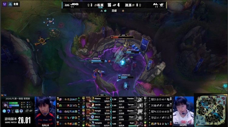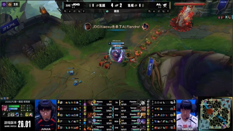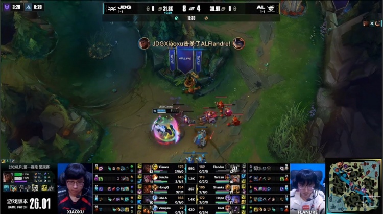 [30:48]JDG上路推进,AL野辅瞬间阵亡,JDG打出0换2,一波推平AL基地先下一城。