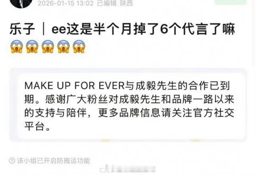 成毅解约🍉又来了~网友爆料和欢瑞已经顺利和平解约 新公司也不是欢瑞子公司 ,之前传到期一直以为是假的!!到期后他要去哪里?2026年开年掉了六个代言了! 成毅和欢瑞合同到期,曝成毅和欢瑞解约后片酬翻了一倍,欢瑞世纪大跌