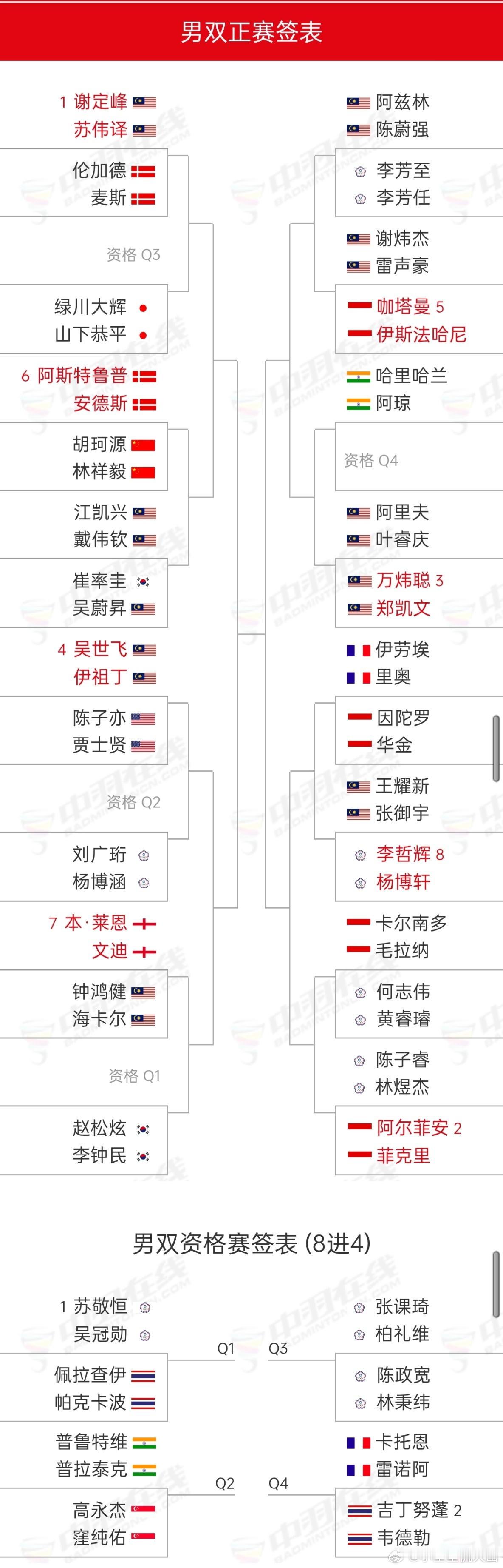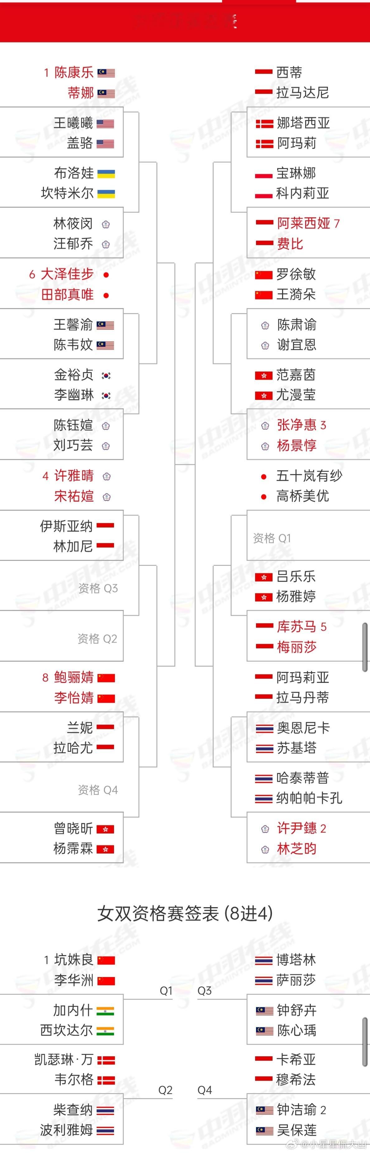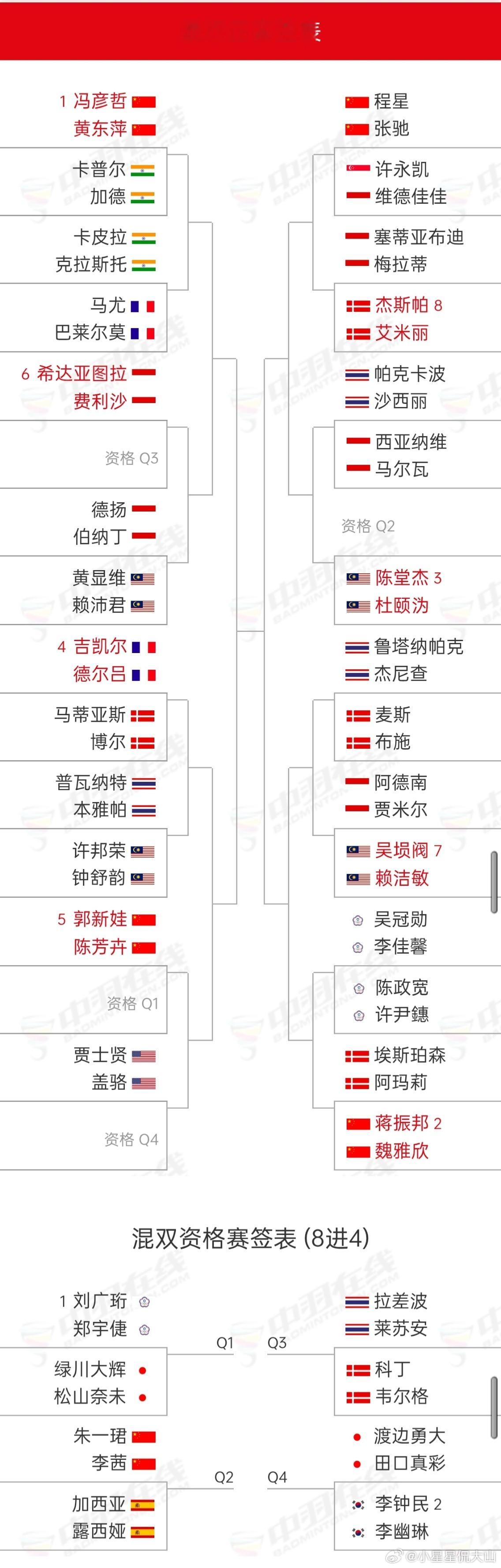 2026年印尼羽毛球大师赛 1月20日-1月25日,超级500赛,国羽各单项首轮签表:王正行🇨🇳 vs 🇲🇾贺首维陈雨菲🇨🇳 vs 🇮🇳胡达韩千禧🇨🇳 vs 🇩🇰杰克斯菲德胡珂源/林祥毅🇨🇳 vs 🇩🇰阿斯特鲁普/安德斯李怡婧/鲍骊婧🇨🇳 vs 🇮🇩兰妮/拉哈尤罗徐敏/王漪朵🇨🇳 vs 陈肃谕/谢宜恩坑姝良/李华洲🇨🇳 vs 🇮🇳西坎达尔/加内什(资格赛)冯彦哲/黄东萍🇨🇳 vs 🇮🇳卡普尔/加德蒋振邦/魏雅欣🇨🇳 vs 🇩🇰埃斯珀森/阿玛莉郭新娃/陈芳卉🇨🇳 vs Q1程星/张驰🇨🇳 vs 🇸🇬许永凯/🇮🇩维德佳佳朱一珺/李茜🇨🇳 vs 🇪🇸加西亚/露西娅(资格赛)
