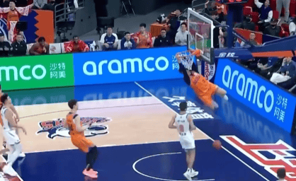 第二节比赛,洛夫顿快攻反击双手暴扣,上海次节末已领先新疆4分。