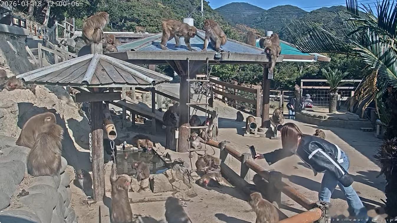 发现淡路岛上的猴儿们特别喜欢玩那个竹筒。晚上还有猴不睡觉也要出来拉一下。