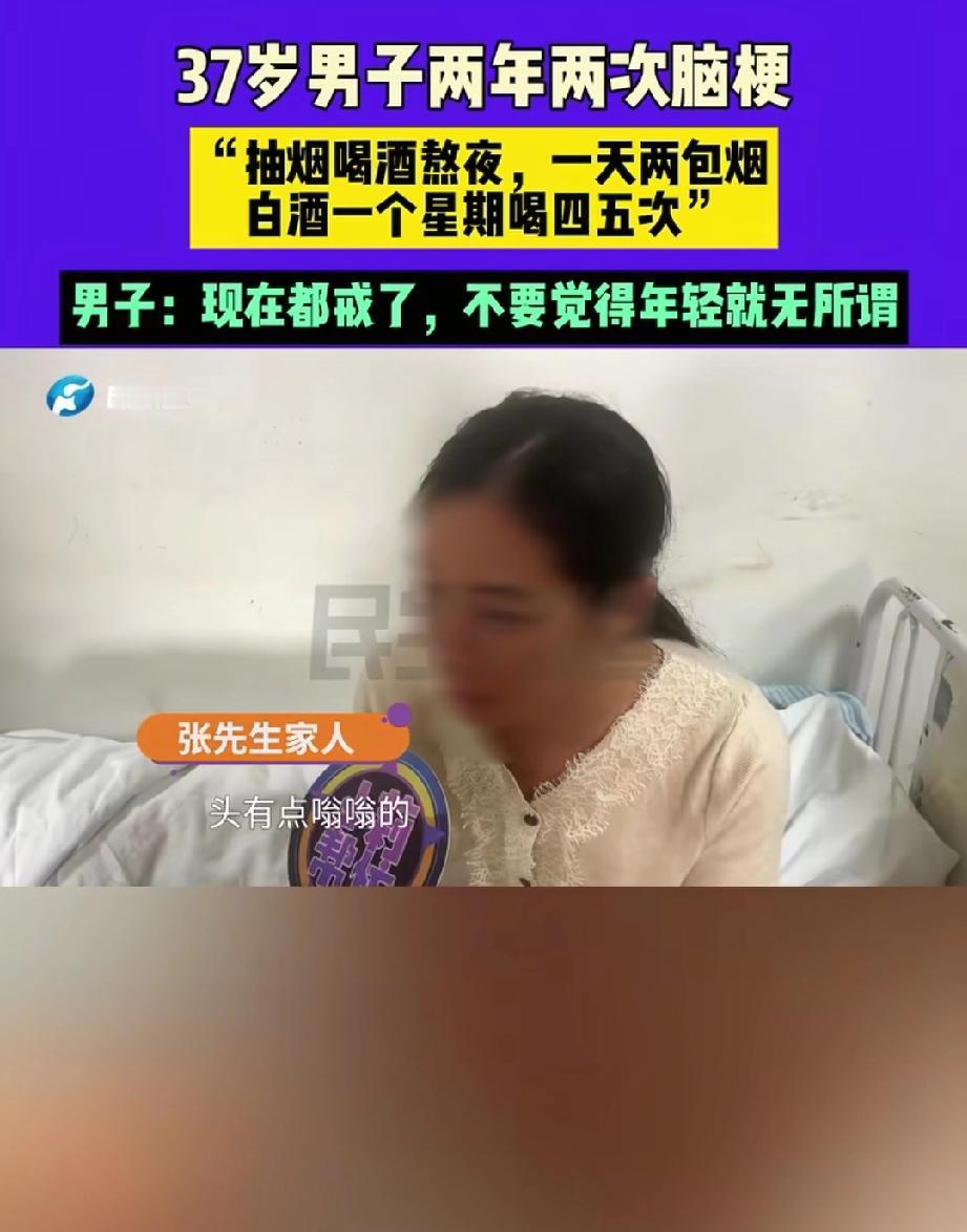 河南郑州,一名37岁男子一天两包烟,一周4次酒,突然口歪、面瘫, 家人发现不对劲后紧急送医,结果被医院确诊为急性脑干梗死,而这已经是他两年内第二次,医生得知男子的生活习惯后也是连连摇头 当医生深入了解他的生活后,发现悲剧并非偶然。张先生自述,他每天要抽两包烟,白酒一周要喝四五次,几乎天天熬夜到凌晨。尽管去年第一次脑梗后,医生已严正警告,但他仗着自己年轻,不仅没有戒烟限酒、规律作息,连控制高血压的药也是吃吃停停。最终,为危险习惯付出了沉痛代价。 为什么年纪轻轻,脑梗会两次找上门?医生指出,张先生的生活习惯,几乎集齐了所有导致脑梗的“高危因素”。 抽烟是血管的“头号杀手”:烟草中的尼古丁会直接损伤血管内皮,导致动脉硬化、斑块形成。有明确数据显示,吸烟者发生脑梗死的风险,是不吸烟者的2到4倍。 ·酗酒是血压的“引爆器”:大量饮酒,特别是烈性酒,会直接刺激血管异常收缩,导致血压剧烈波动,极易诱发脑梗。酒精还会加重肝脏负担,影响降脂、抗凝等药物的效果。 · 熬夜与高血压是“隐形推手”:长期熬夜和精神压力,会导致血压升高和血管痉挛。张先生本身就有高血压,却不规律服药,让血管长期在高压下“超负荷工作”,加速了病变过程。 这些因素叠加,就像给血管安上了“定时炸弹”。第一次脑梗是身体发出的最严厉警报,但可惜,他没有抓住这最后的改正机会。 有网友评论:“那些不抽烟不喝酒的人,不也得脑梗吗?” 健康生活,不代表就能百分百免疫疾病。脑梗的成因复杂,遗传、其他疾病、年龄增长等都是不可控的风险。 但是,这绝不能成为我们放纵自己的借口!医学追求的是“概率”。不健康的生活,是在亲手大幅拔高自己患病的概率。 就像张先生这样,一天两包烟、每周四次酒、熬夜、不控血压,这已经不是普通的生活习惯差,而是在主动地、持续地摧毁自己的健康根基。 专家的数据触目惊心:我国40岁以上脑卒中患者人数高达1242万,且发病越来越年轻化。每10秒就有1人初发或复发脑卒中。当你还在说“我还年轻”时,疾病可能已经盯上了你。 请别再为不良习惯找借口了。健康的生活方式,就是我们能为身体穿上的“最强护甲”。它不能保证你永远不生病,但能让你在面对疾病时,拥有更厚的血条和更大的胜算 从今天起,请审视自己的生活:戒烟、限酒、控血压、多运动、少熬夜。这些老生常谈的话,是无数像张先生这样的病例用教训换来的“生存法则”
