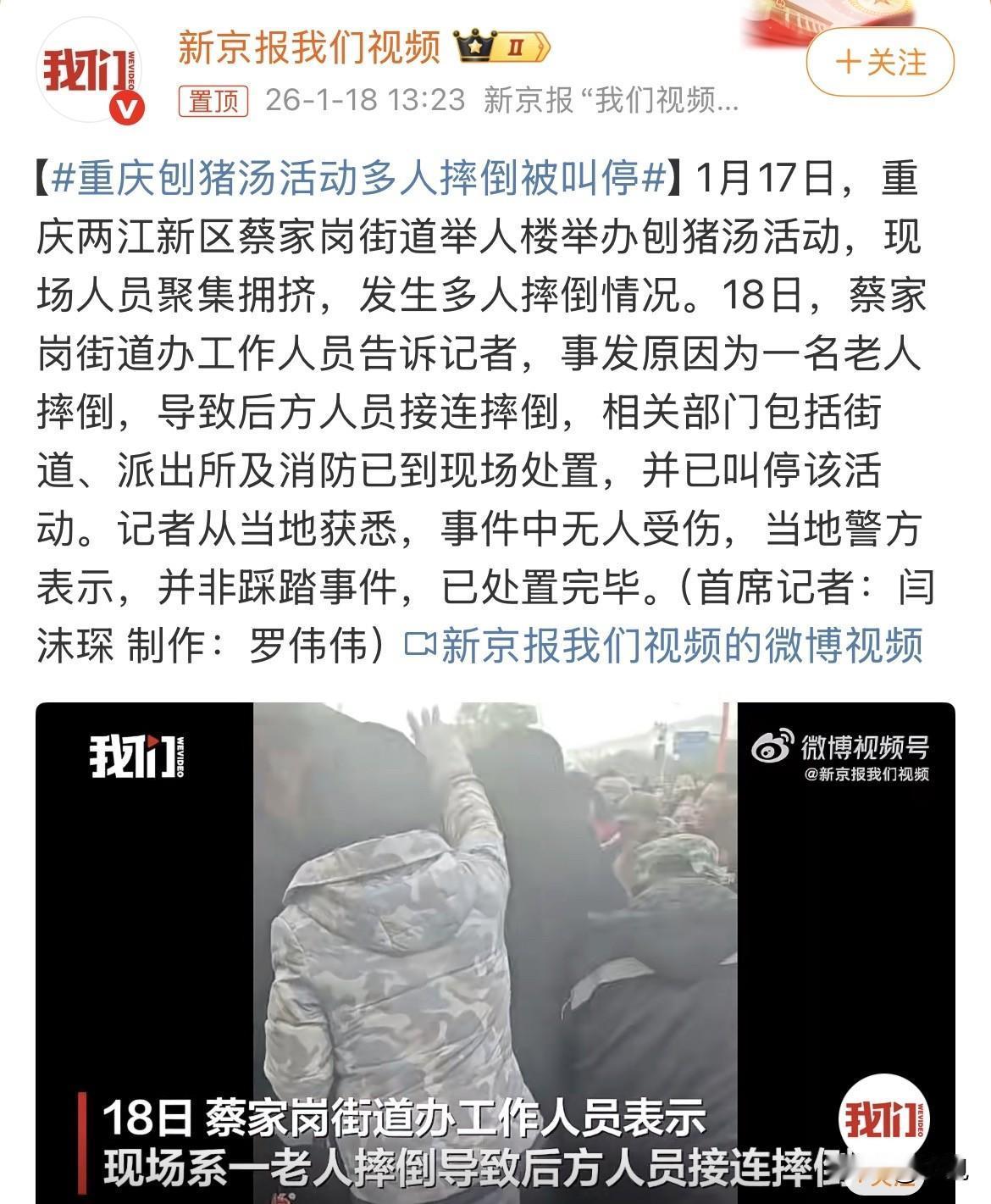 前天在重庆蔡家岗街道,一个刨猪汤活动差点出事。现场人挤人,一位老人没站稳摔了,后面的人像多米诺骨牌一样跟着倒下去一片。视频看着挺吓人,还好最后说没人受伤,警方也叫停了活动,说不是踩踏,就是推搡。 这事被街道办定性成了“私人行为”。这词儿挺值得琢磨。意思是,这是个人或小团体自己搞的,不是街道或社区组织的官方活动。这就把责任划开了一道线。 同样是刨猪汤,结果大不一样。前阵子重庆合川有个网名叫“呆呆”的女孩,也在网上喊人去家里吃杀猪宴,结果火了。上千网友开车过去,宰了五头猪,办成了流水席,直播间好几万人看,最后顺顺当当,还成了个温暖的故事。为啥她没出事? 我看,差别就在“规范”两个字上。“呆呆”那个虽然也是私人发起,但规模上去后,它碰对了路子,无形中符合了一些“规矩”。比如,来的网友虽多,但可能有自发维持秩序的;屠宰的猪,有当地企业和网友捐赠的,来源相对清楚。它更像是一次成功的、带着运气的民间自组织。 而蔡家岗这个,就卡在了一个尴尬地带。它可能有一定规模,吸引了足够多的人聚集,但又没达到(或无视)那个需要正式“报备”的门槛。重庆长寿区前几天刚发通知,100人以上的坝坝宴、刨猪汤,得向市场监管所报告。规定了场地要远离垃圾堆、沼气池,食材要有票据,生熟要分开。这些规定,就是为了防蔡家岗这种拥挤,更是为了防食物中毒这类更大的风险。 私人行为,意味着灵活和人情味,但也意味着安全责任的边界是模糊的。一旦出事,找谁?另一个新闻让人心惊:四川有个地方,邻居帮忙杀年猪,被猪踢倒摔成截瘫。法院判请人帮忙的那家赔了52万,因为没提供安全环境。你看,就算是人情帮忙,出了事,法律照样要厘清责任。 所以,我的看法可能有点不同。我不觉得该一棍子打死所有私人办的活动。像“呆呆”那样,把传统民俗办出正能量,是好事。问题关键在于,当私人活动的规模超出家庭聚餐的范畴,变成一场“准公共活动”时,组织者心里得有根弦,得有点“公共管理”的意识。 这根弦,包括对人数上限的预估,对场地拥挤程度的判断,对食品安全最基本的把关。不能说“我是私人请客,就啥都不用管”。既然公开邀请了那么多人,事实上形成了聚集,就得对在场所有人的安全负起最起码的责任。 这次运气好,只是摔了跤没受伤。但万一是更严重的踩踏,或者吃出问题呢?传统的好东西,要延续下去,光靠热情不够,还得靠一点现代社会的规则意识和责任心。热闹不能建立在一碰就倒的危险平衡上。 你觉得呢?这种民间自发的热闹活动,怎么才能既保住那份人情味,又不出乱子?
