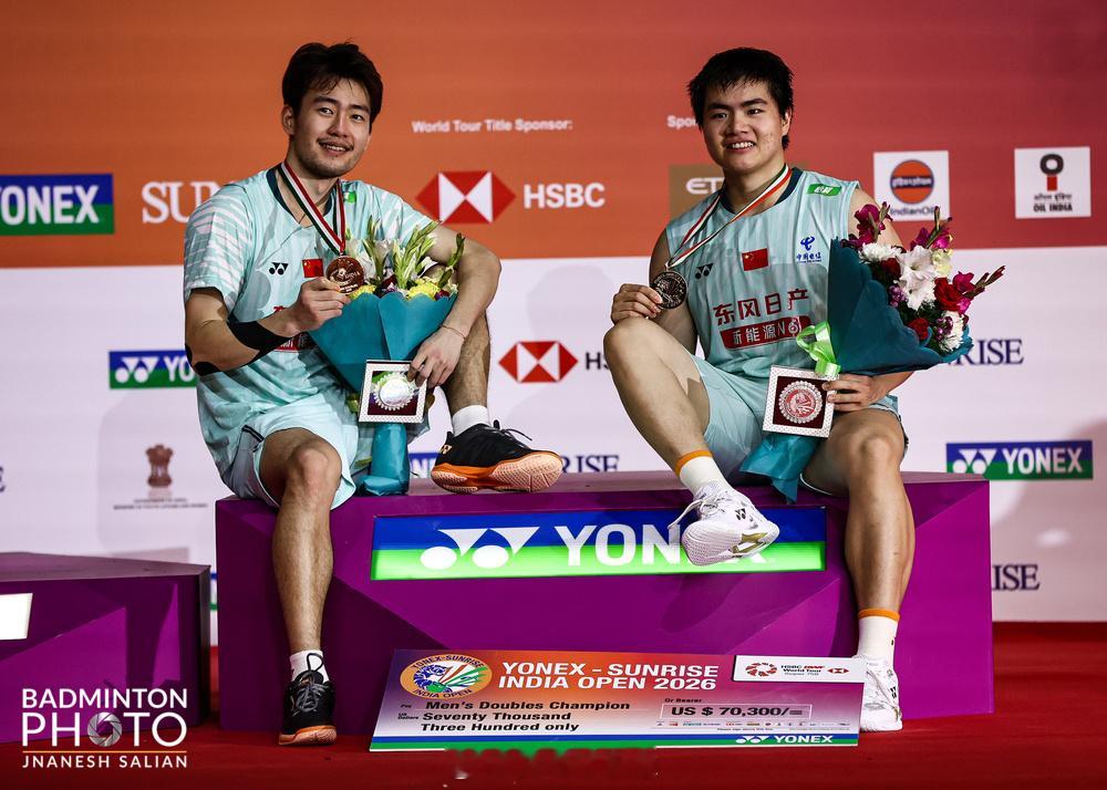 从2023到2026,同样的领奖台,恭喜“梁王”再次在印度公开赛夺冠!梁王组合印度赛夺冠梁王组合2026年首冠2026年印度羽毛球公开赛