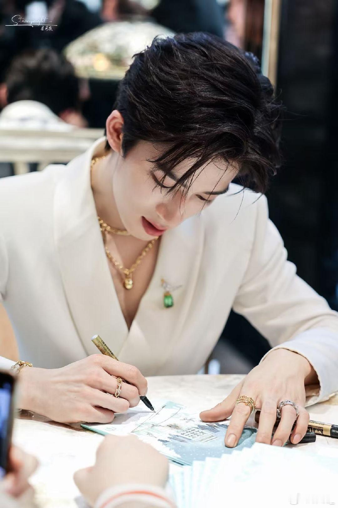王星越这个视频的退出键在哪里终于吃上了王星越的细糠 白色西装衬出曼妙身形,签名时