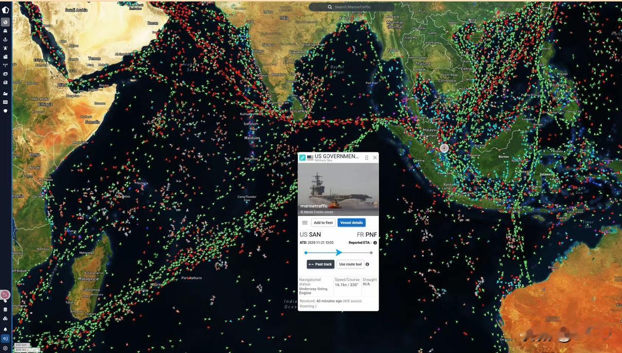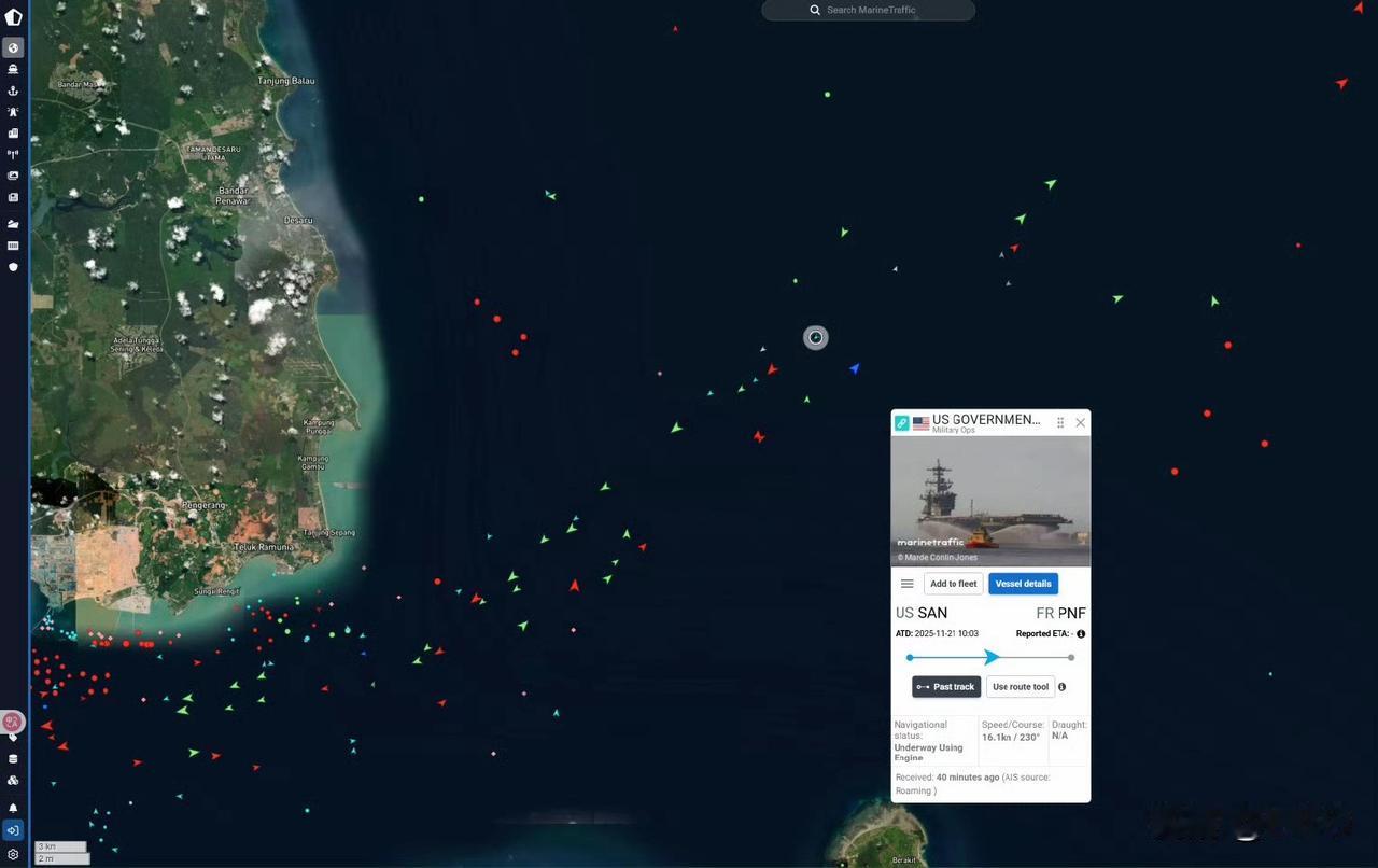 值得注意的是:林肯号航母是在进入马六甲海峡前才主动打开 AIS 广播的。