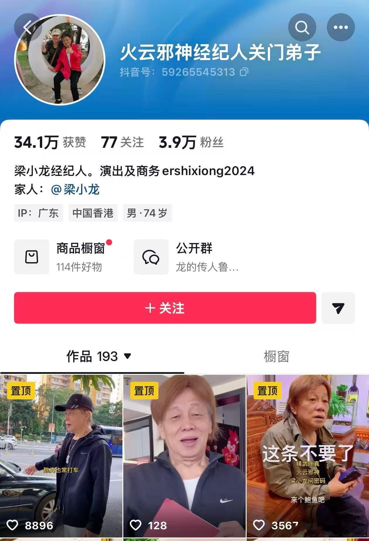 梁小龙经纪人账号仍在更新 1月18日,据报道,曾在周星驰电影《功夫》中饰演“火云邪神”而深入人心的梁小龙,于1月14日逝世,享年77岁。有网友发现名称为“火云邪神经纪人关门弟子”的账号是梁小龙账号上关联的经纪人账号,凤凰网娱乐试图联络该账号,但截止发稿该账号并未有回复。凤凰网娱乐发现,媒体报道梁小龙14日去世,但是该账号时至今日依旧在发布梁老师的相关视频,1月18日发布2条,15-17日也均有发布。因此,该账号相关视频评论区,众多网友质疑其想要“榨干梁小龙老师最后一滴价值”“吃人血馒头”。