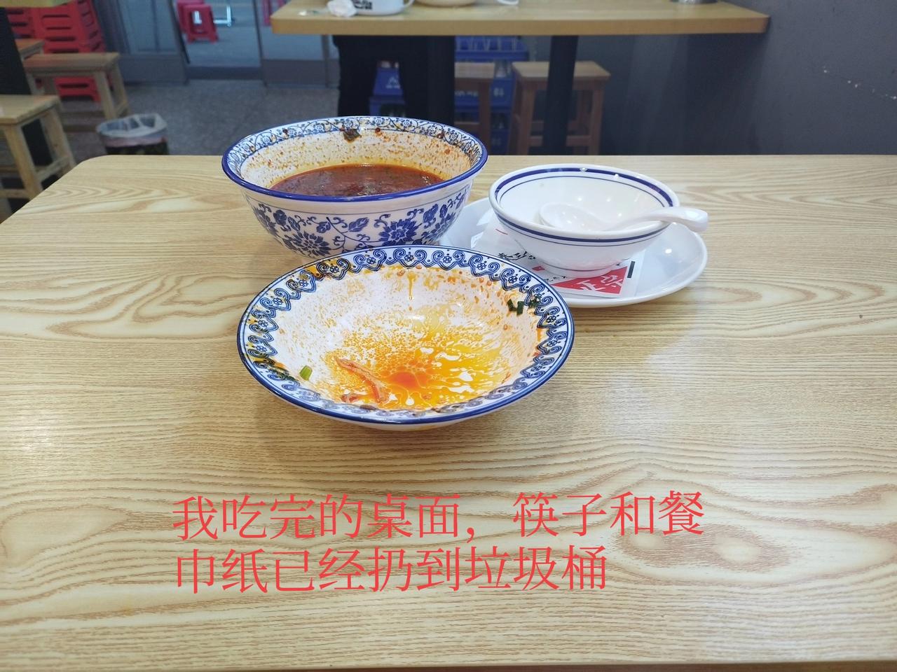 下午在外边吃米皮,在我前面桌子坐了一对母女,她们吃完饭桌子上扔的像垃圾场,母女俩起来就走了,我发现像这样的人还真不少,大家都感觉没啥,但是我做不出来,我不管在哪吃饭,高档饭店也好、路边摊也罢,我都一样,尽量保持环境卫生,如果像这样我会感觉就像没洗手抓东西吃,我绝对不会那样做。
