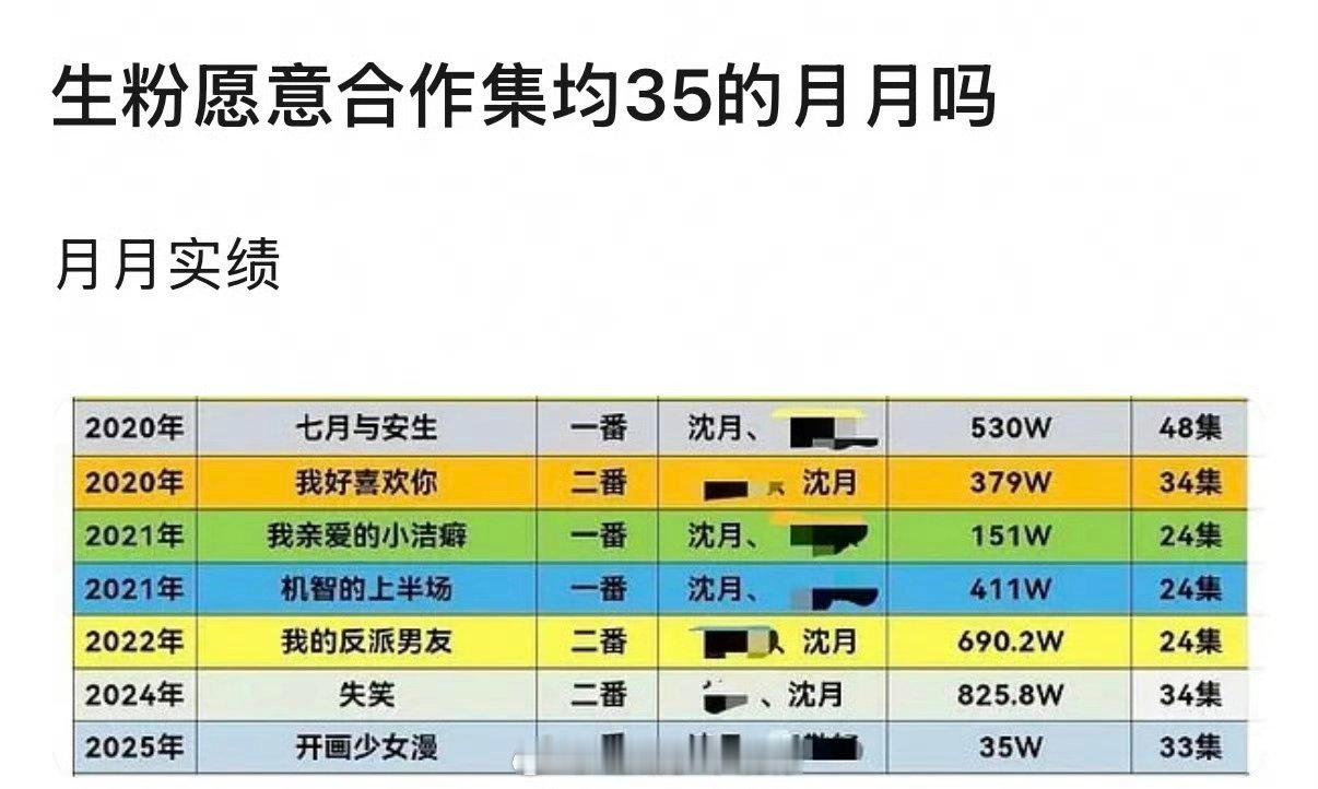 网友汇总沈月近几年作品集均数据,最低的竟然只有35?