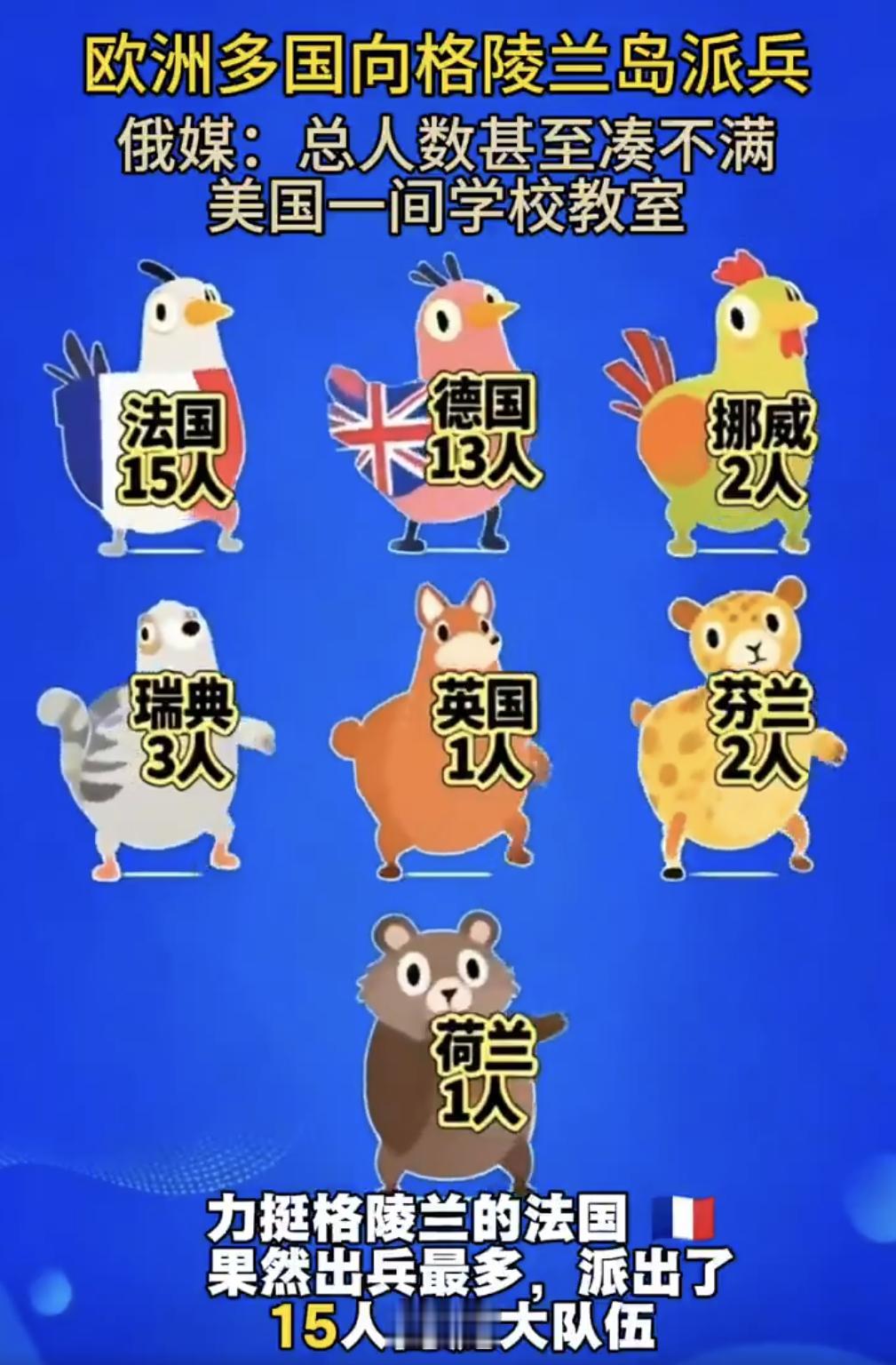 这图太形象了,八国联军抵御美军登陆格陵兰岛。 南评:最新消息,德国的大兵已经撤走了,还剩七国[惊呆]。
