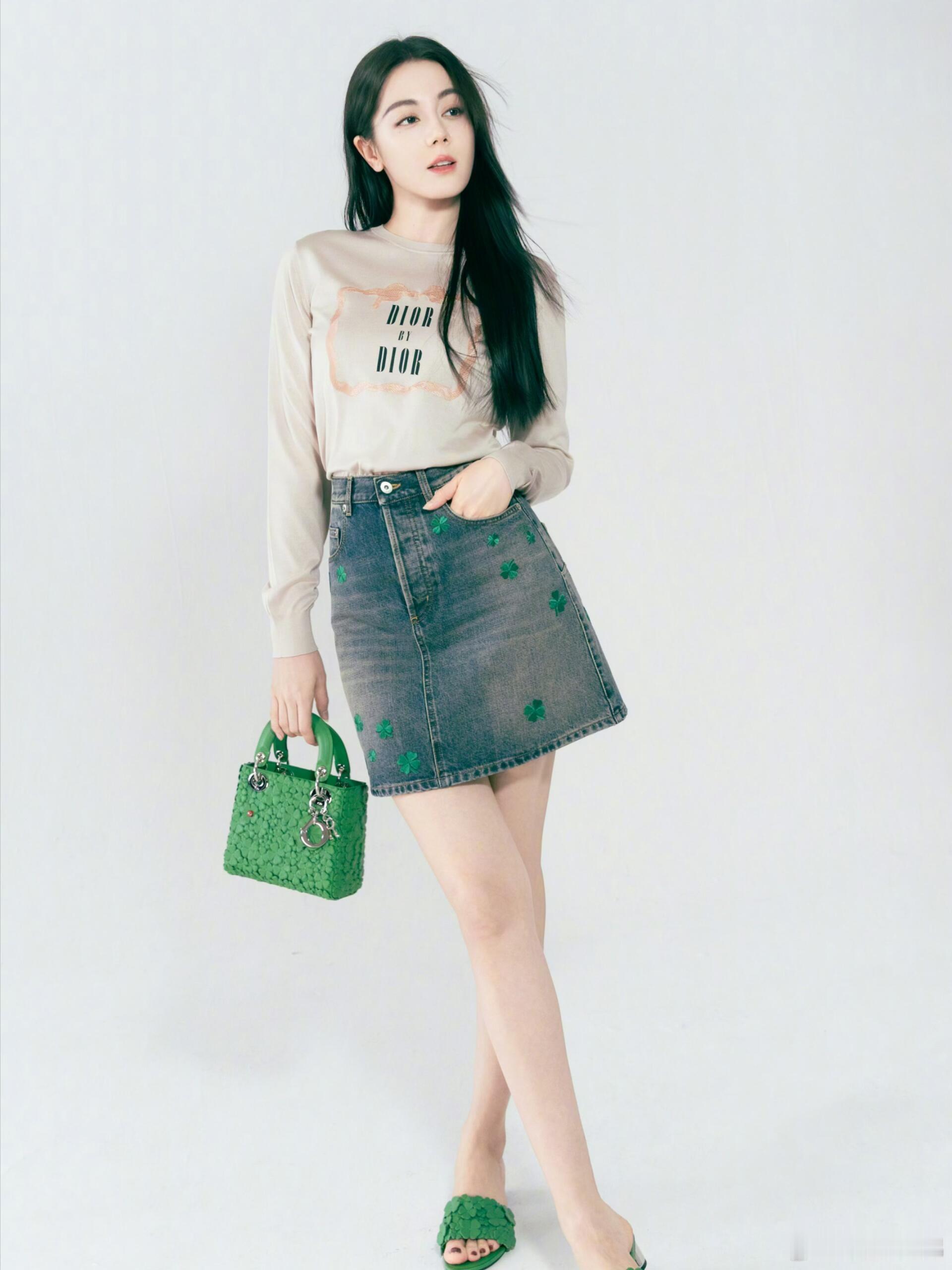 迪丽热巴这套春装真的把清新感焊在身上🌿浅米色针织衫+牛仔短裙,绿色刺绣细节太戳人,同色系小包一拎,温柔又显白,美到心巴上!想get同款氛围感:上衣选浅色系更干净,牛仔裙带刺绣更有亮点,配饰同色系就很高级✨迪丽热巴 迪丽热巴同款 女明星穿搭 明星同款 春装穿搭
