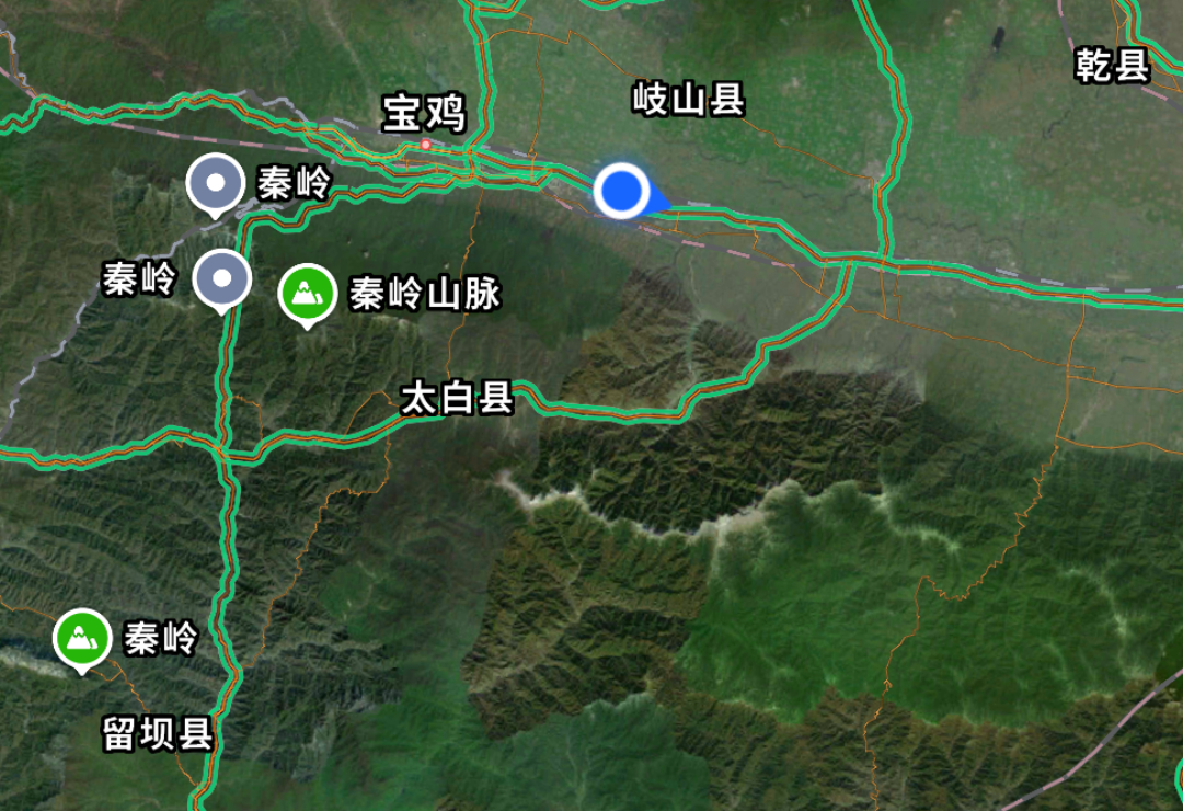路过秦岭,可惜天色已晚,看不到了 对了,我圈起来的这个山脊就是最抖音很火的那个,