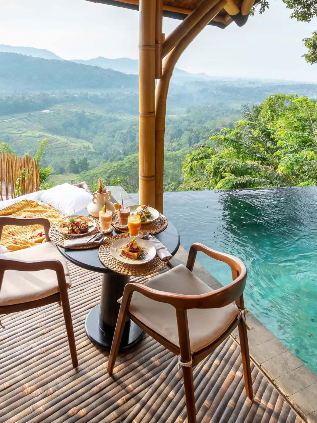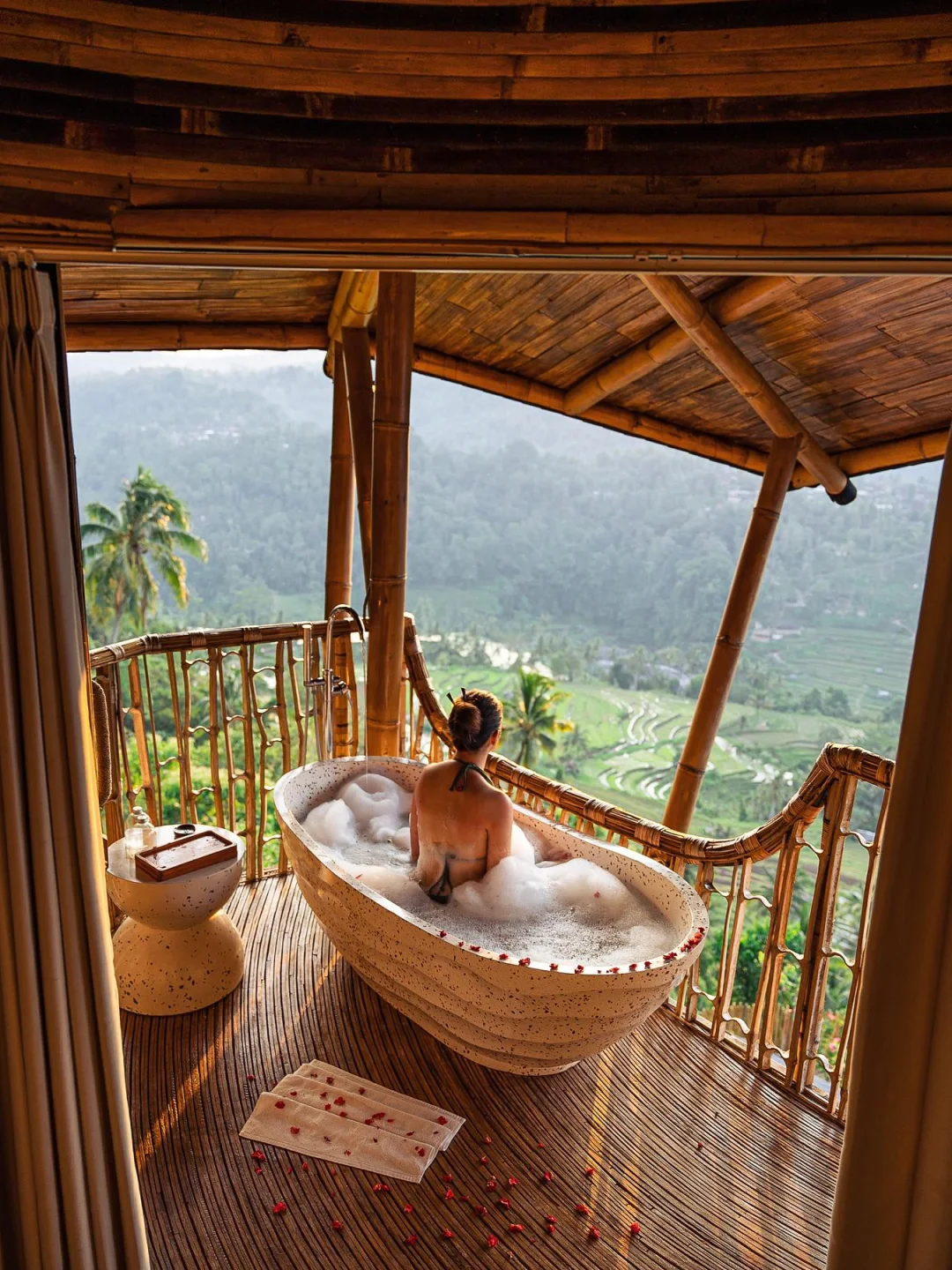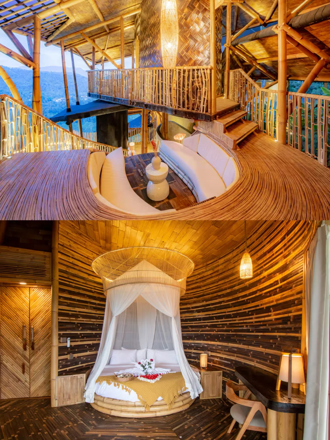等有假期的时候,真的很想在这里连住一周,因为Airbnb本身超美超舒适之外,还可以体验按摩、烧烤、瑜伽、徒步、漂流等各种有趣的活动。 辛苦工作了大半年, 只想找一个远离城市喧嚣的大自然好好休息🔋, 这家完全被大自然包围的Airbnb🌲树屋, 满足了我对度假的全部想象。 位于半山腰上,隐藏在郁郁葱葱的热带森林中, 左侧阿贡火山,前方梯田和山脉,右侧是印度洋, 不论从哪一个房间望出去,景色都超美超Chill。 民宿是一栋三层竹屋 Villa, 是很出色的竹建设计作品, 住在这里就像住在艺术品里一样, 竹子的味道也很好闻。 一共有3个卧室,3 个卫生间, 所有卧室都是封闭式的, 不用担心蚊虫并且还有空调, 卧室的视野也都很好,有大阳台和大浴缸。 休息区也有3部分, 顶层有下沉式沙发区、中层有日光浴平台和带厨房的大客厅。 当然最喜欢的区域还是无边泳池,坐在这里心情就会变好。 这家Airbnb民宿有比酒店还周到的服务, 有一组专业的团队,在住宿期间为大家工作, 厨师、司机、管家、保安等等。 安全的同时还能享受到真正的大自然和当地特色。 这家厨师做的饭也很好吃,可以🐟定早餐、午餐和晚餐, 除此之外,还能安排各种体验活动! 在民宿内的时候,可以体验水上早餐、户外烧烤、按摩水疗, 出去的话可以去看瀑布、稻田、各种景点;喜欢户外运动的宝子们可以去巴都尔火山徒步、或者在附近漂流、潜水🤿等 距离最近的城镇约10分钟车程, 可以在那里找到自动取款机、药店、当地餐厅等。 📺设施齐全:吹风机、户外淋浴、熨斗、空调、暖气、网络、厨房、冰箱、餐具、停车位等 💜民宿名:3 Bdr - The Dream Cliffside Bamboo Villa By Avana ✈️去机场约1小时车程,距离乌布约50分钟车程 🛏️可入住6位房客,3 间卧室,3 张床 3 个卫生间 📷本次文章图文来源于Airbnb及ins
