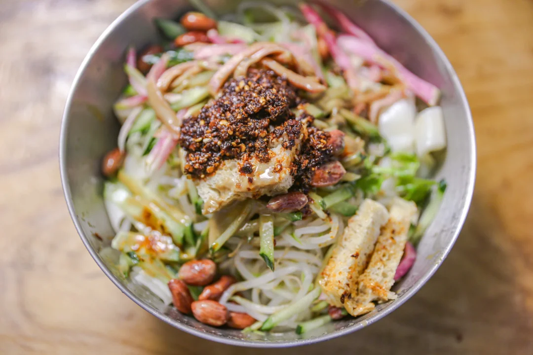 一份凉皮=凉皮+配菜+料水+麻酱+面筋+油泼辣子