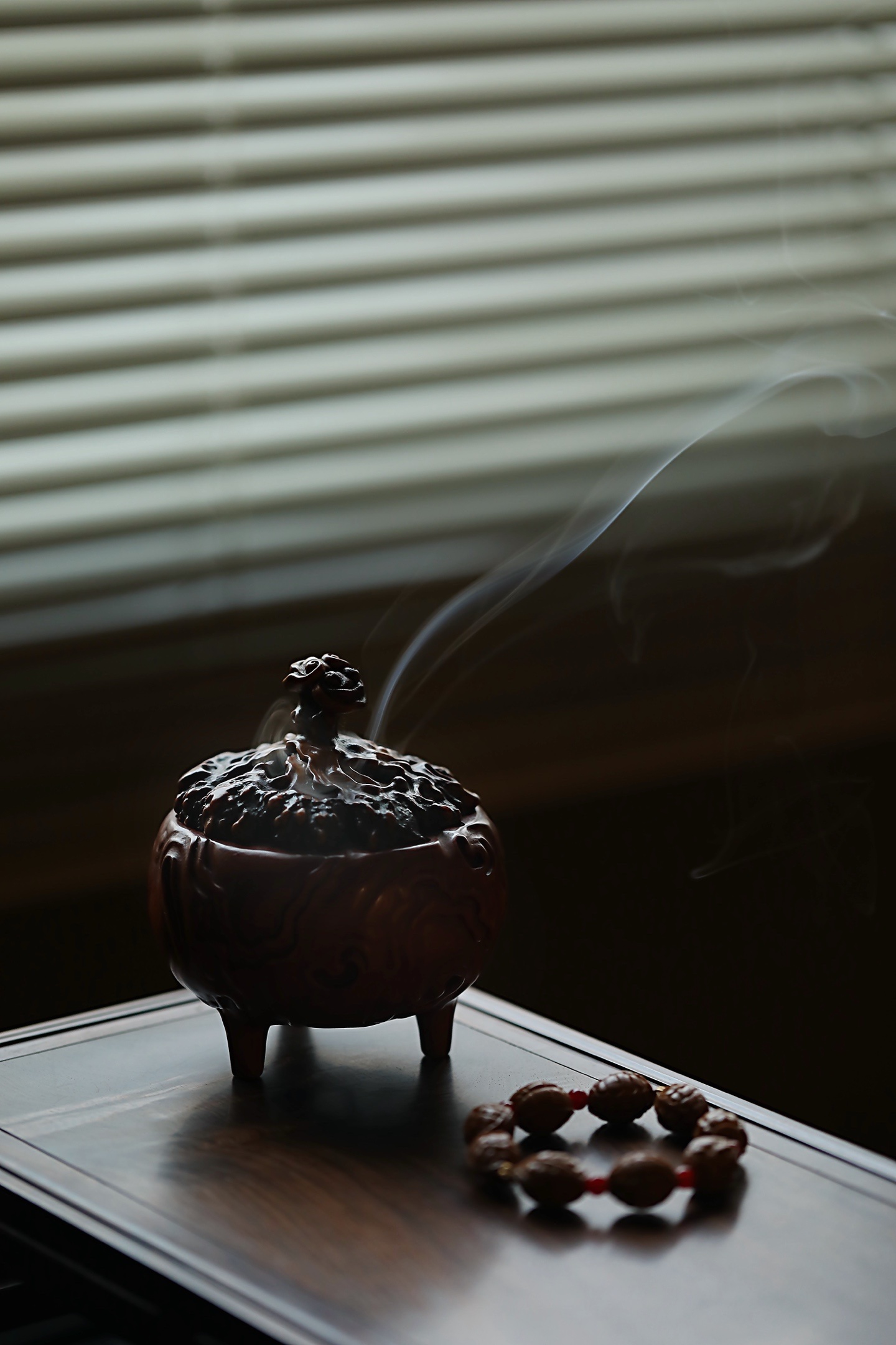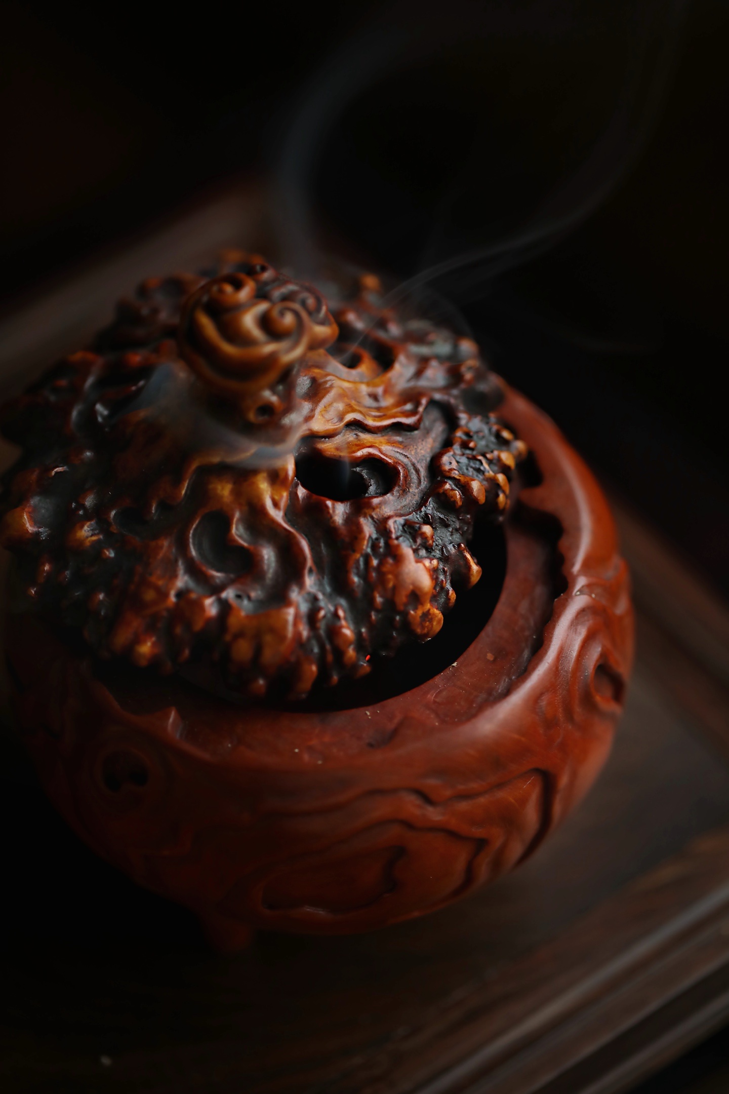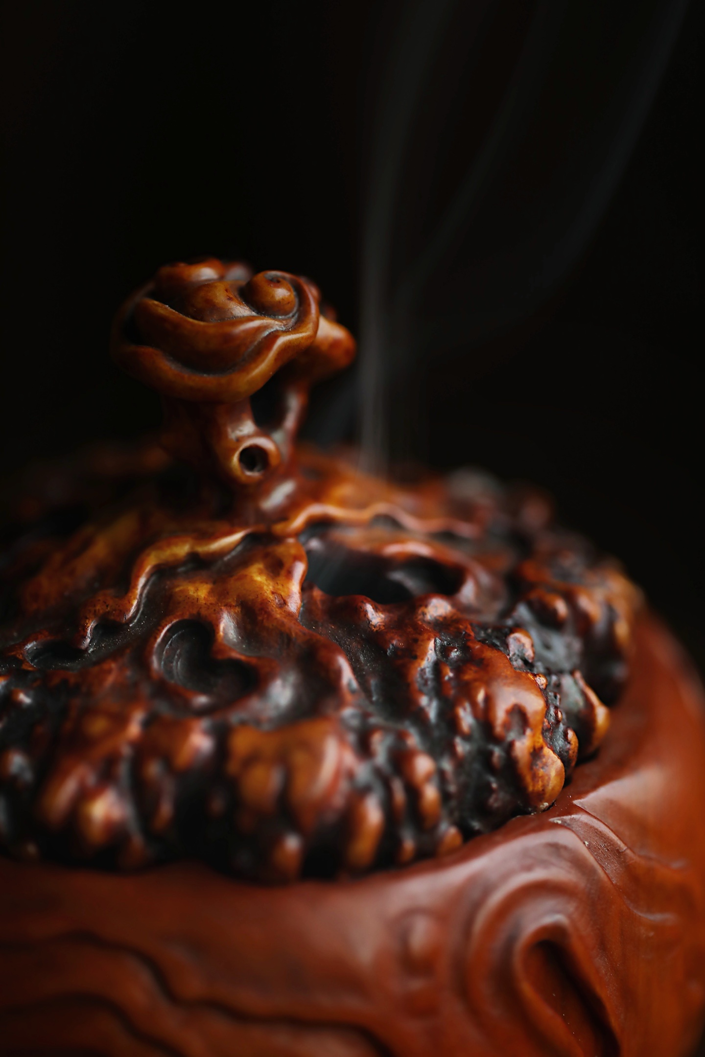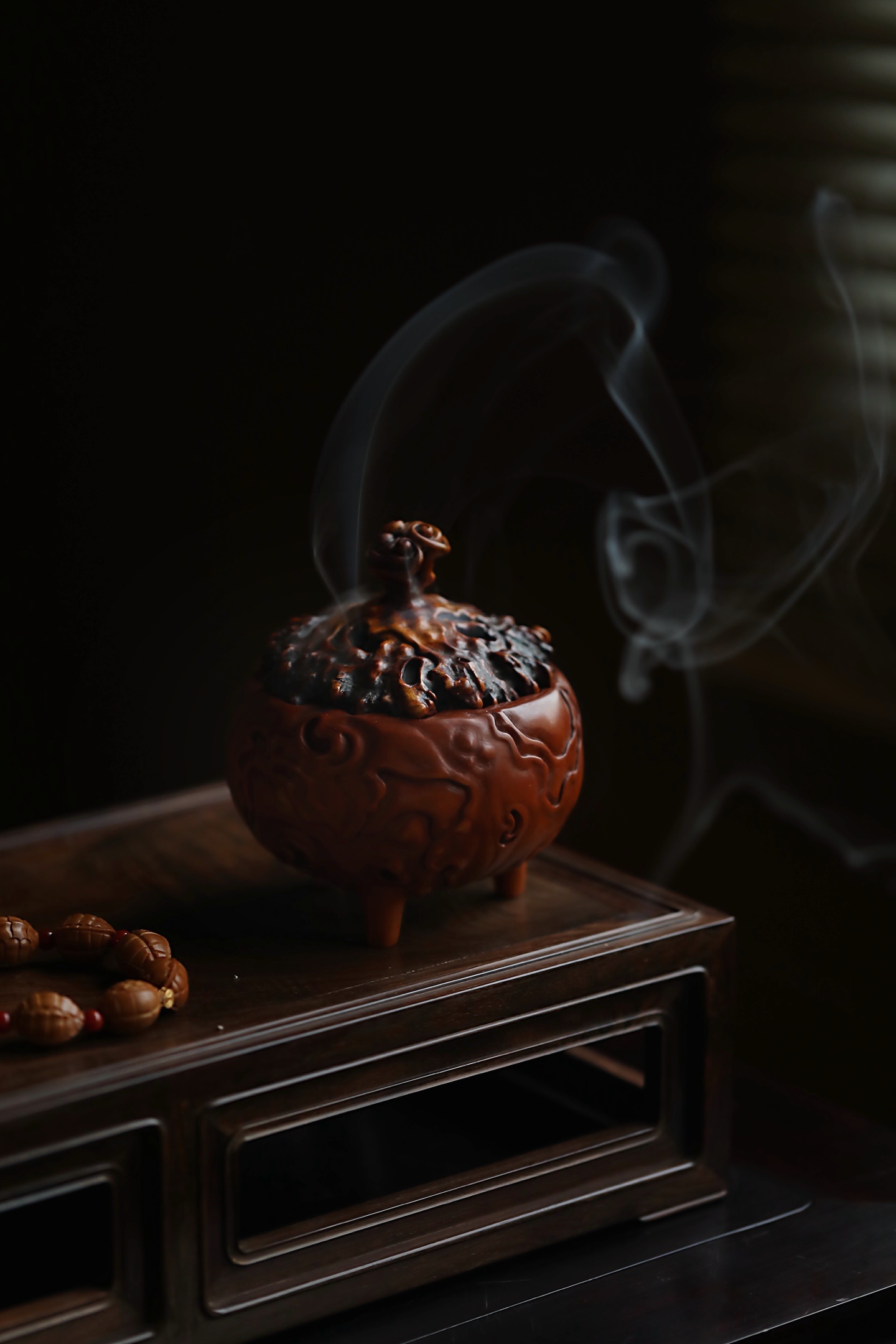 鹿角×黄杨木 | 三足香炉全手工精细雕琢,极考究匠人耐心,制作繁杂,鹿角炉盖,镂
