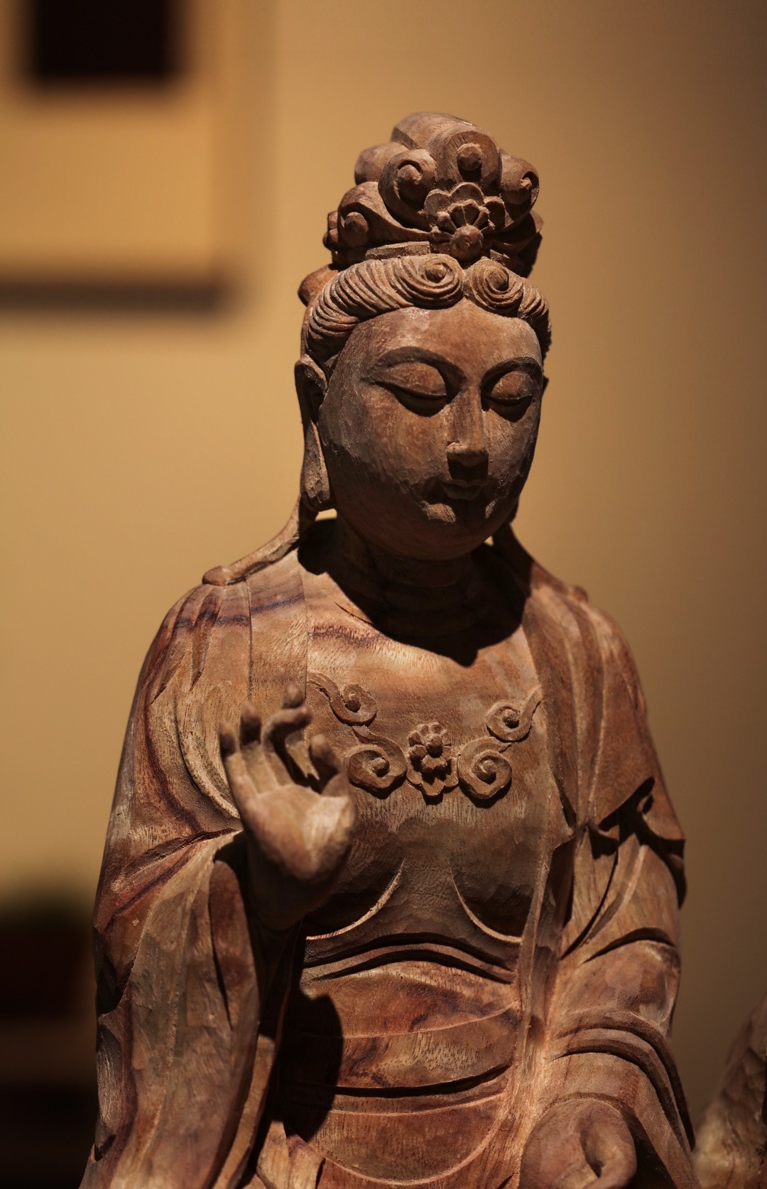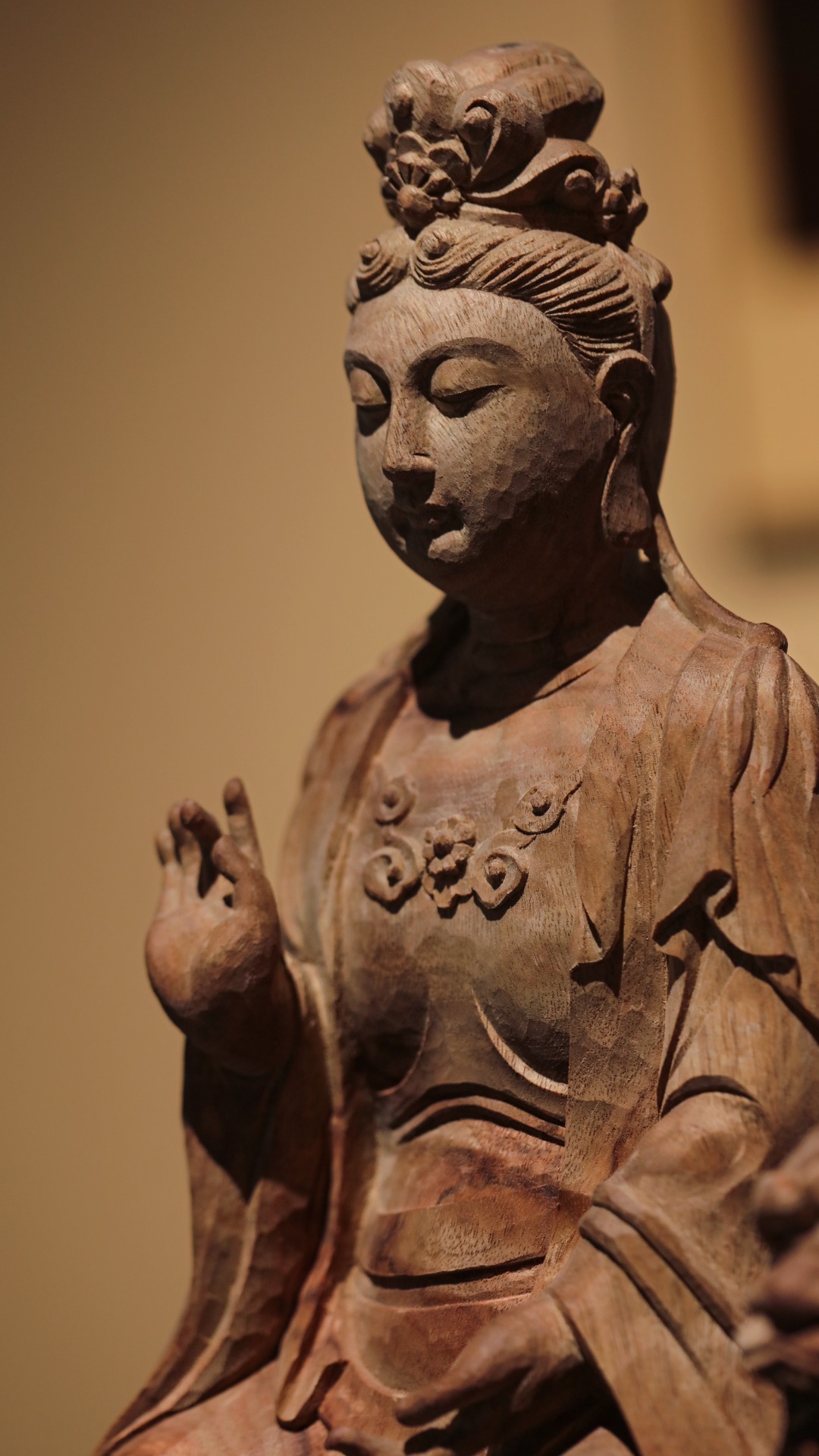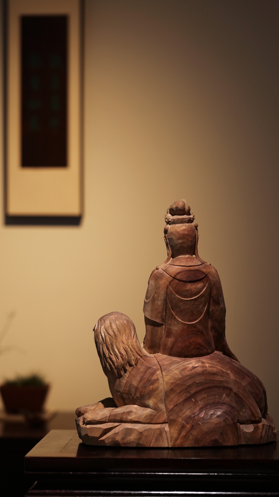 百年香樟木 | 文殊菩萨 取材台湾百年香樟木,一木雕琢,菩萨慈悲悯人,刻划生动,座下卧狮,造型美观,衣袍处理如行云流水,舒畅有度,姿态优雅,香气醇厚,空间陈置,意境悠远。37*20.5*42.8cm 重7230g