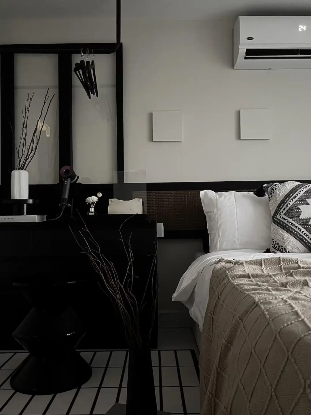民宿楼下有一家营业到凌晨2点的便利店,晚上饿了也可以下楼觅食!随便买些东西上楼吃,边吃边追剧也很不错,民宿的客厅布置的很有设计感,家具品质很不错,非常喜欢这里的环境,黑白灰的家具家电感觉看上去很有质感,随便拍一拍也很好看,两间卧室互不打扰,晚上可以睡的很好~