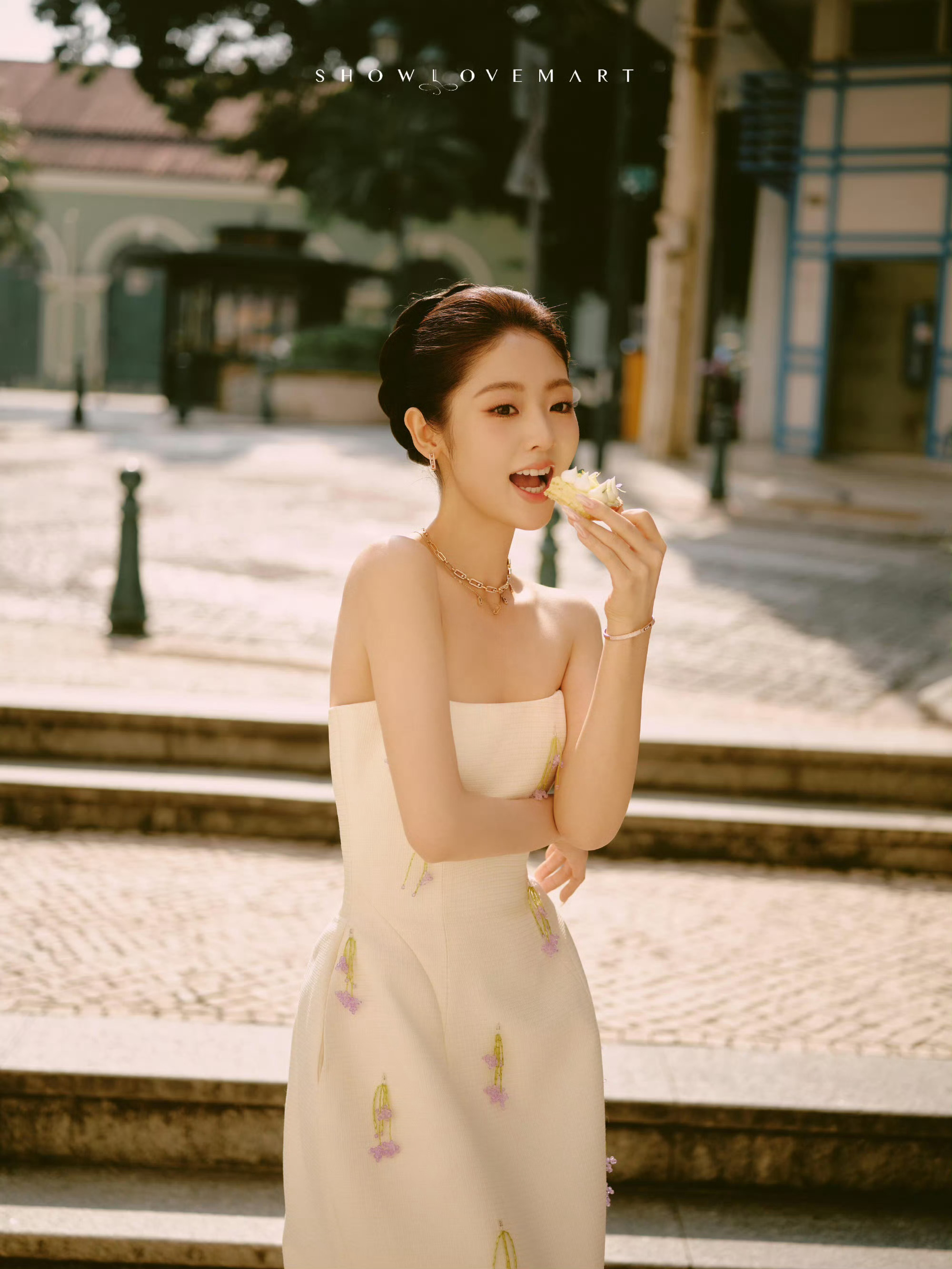 穿礼服的邢菲简直就是古灵精怪的公主好吗!吃甜点喝可乐更有一种活泼俏皮感