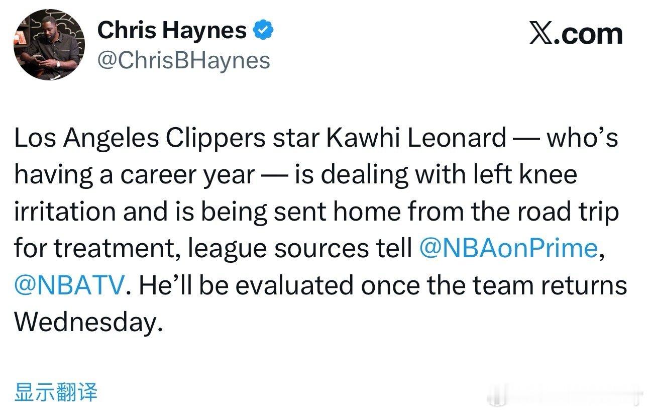 伦纳德的伤,不会重!两个原因据美记Haynes报道,伦纳德将被安排提前离开球队