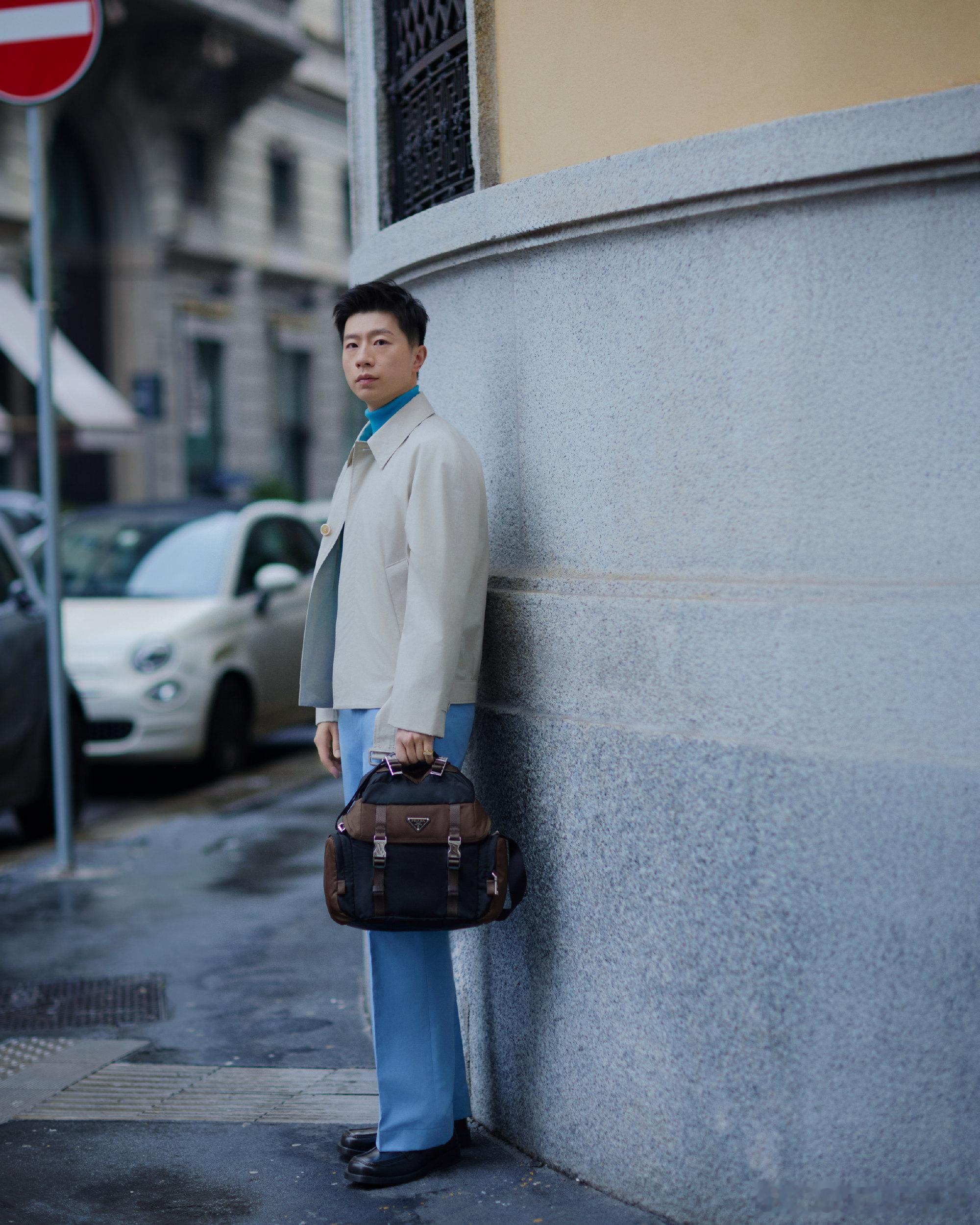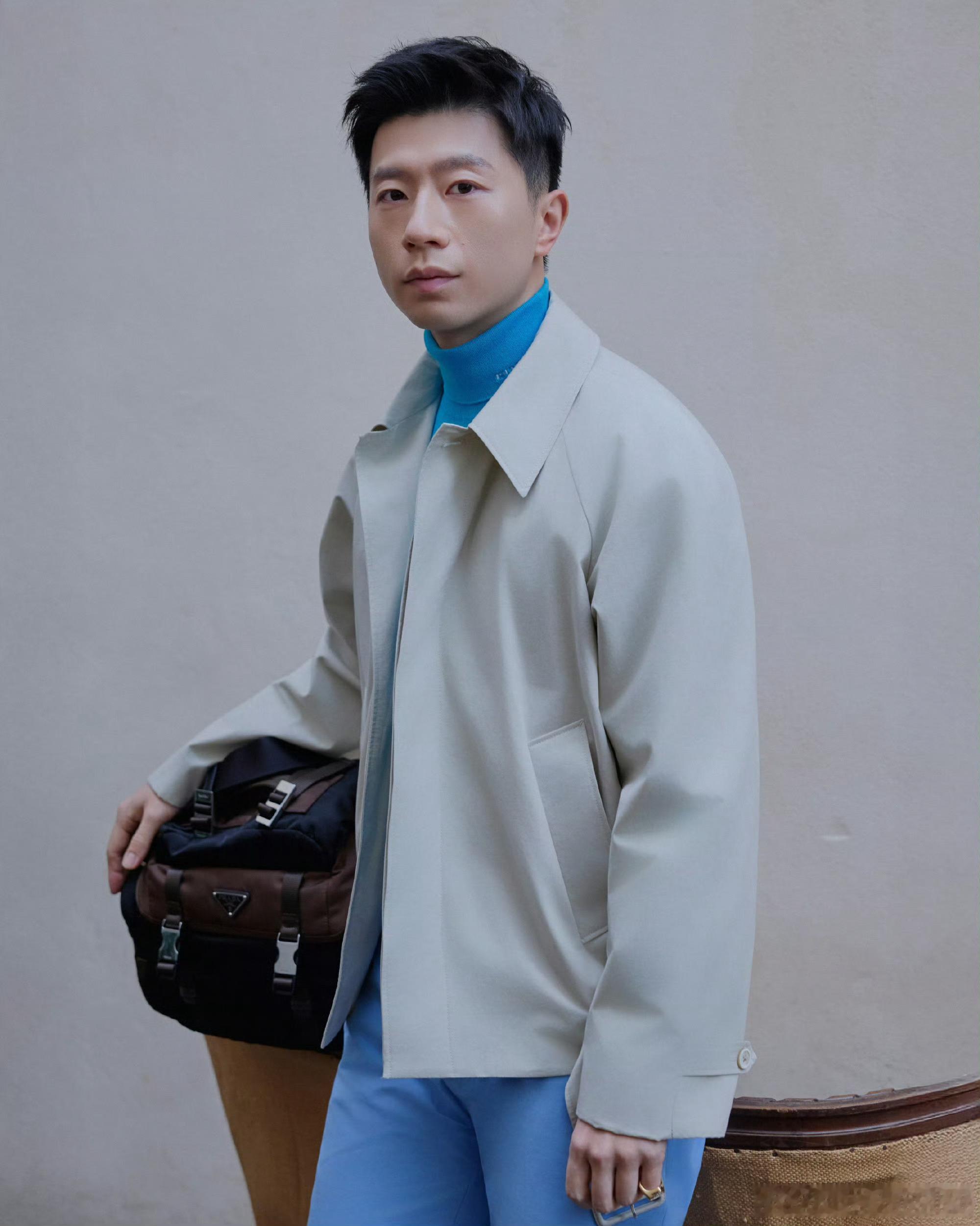 Prada代言人马龙以一套 2026 超季春夏男装系列内搭蓝色高领针织即将亮相 prada大秀 这么嫩可还行男装周米兰男装周