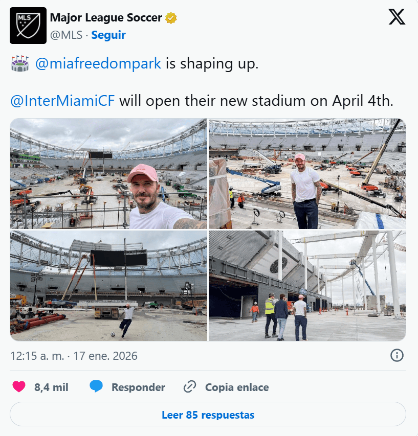 本周五,俱乐部联合老板大卫-贝克汉姆亲自前往工地现场,并通过社交媒体分享了球场建设进展的图片,明确传递出一个信息:这一项目已经从规划走向现实。