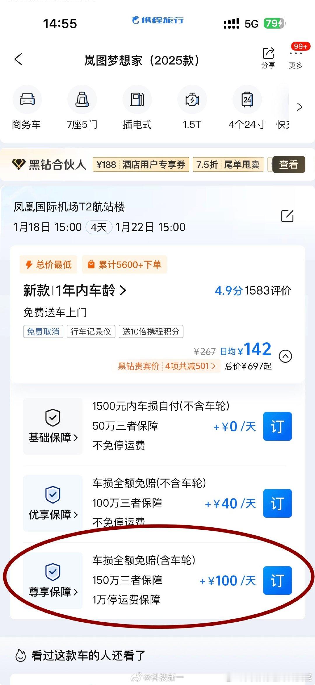 卧槽!万万没想到,你们平台的租车竟然存在低价套路!我租了四天的岚图梦想家,已经买了你们最贵的保险(每天+100元的尊享保障),我本以为是啥保障都有了。因为我今天飞三亚的航班延误,不确定几点到,就想让我三亚的朋友帮忙先取车。结果租车公司竟然说不行,我买的保险不是“全程无忧”(这个保险你们平台上根本没有),买“全程无忧”需要每天再加150元,等于每天保费250元。而且租车公司说我买的保险不包含车衣划痕(我都不知道有车衣这事),反正就是各种忽悠我要每天加150元买这个全程无忧才行,否则会很麻烦。我说如果这个保险携程上有我可以买,但平台上没有。他说你们平台有,但目前找了半天也没发现,明显在瞎忽悠。我又问咋买,他说他在合同里备注,线下付钱给他!这明显是坑人的,建议你们好好查查这个镨森租车,我是从你们主页进入的,这种套路商家出现在你们这种大平台太不应该了抽奖详情(