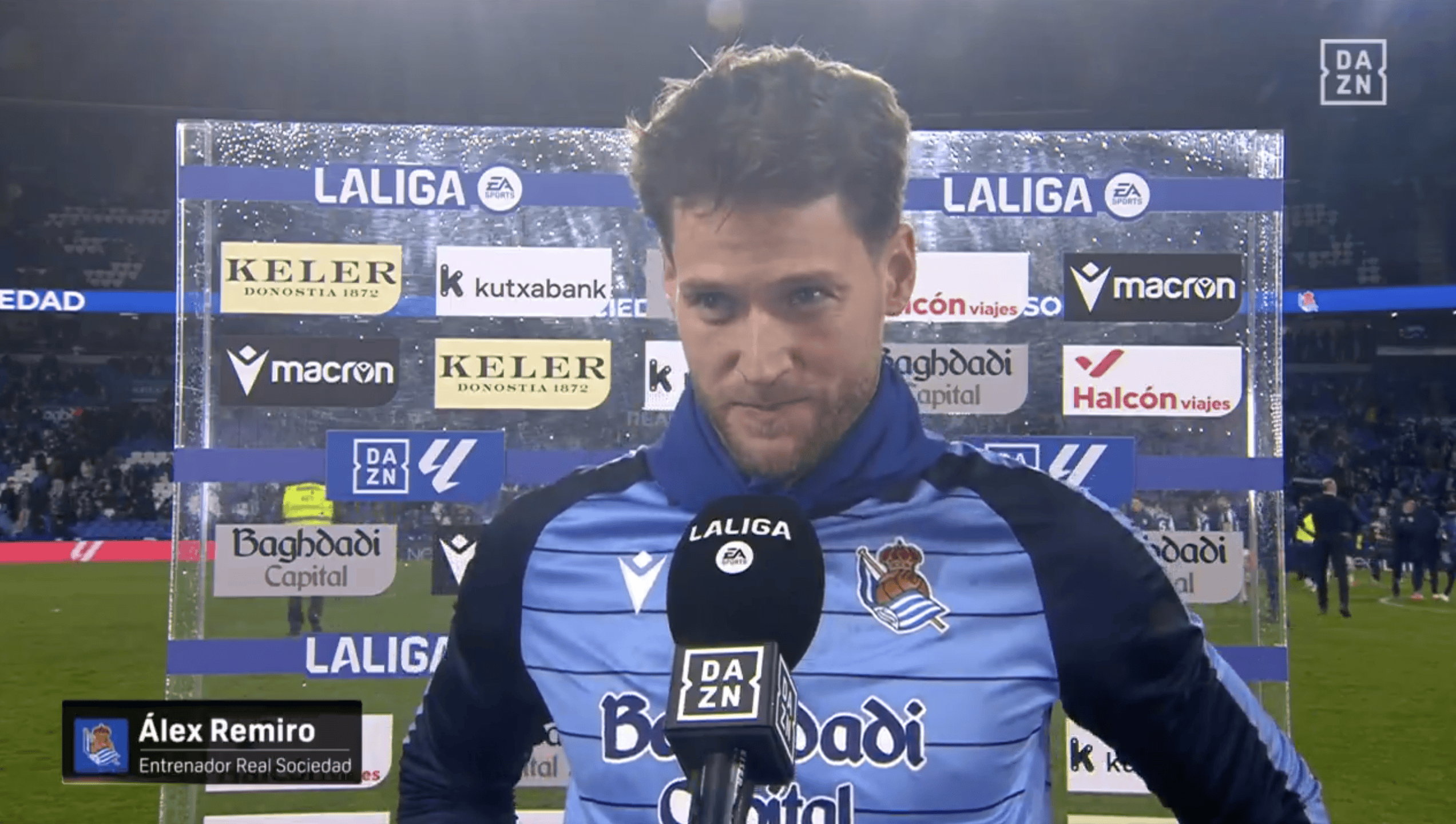 虎扑01月18日讯西甲第20轮,皇家社会主场2-1战胜巴塞罗那。本场最佳球员雷米罗赛后接受采访。