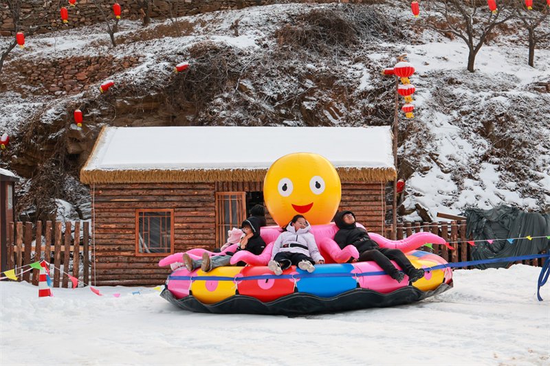 1月17日,游客在邢台抗大·雪韵小镇游玩。