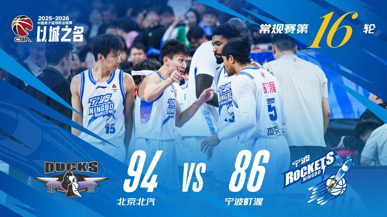 配文:1月18日,CBA2025-2026赛季常规赛第16轮,宁波町渥队客场86:94不敌北京北汽队。