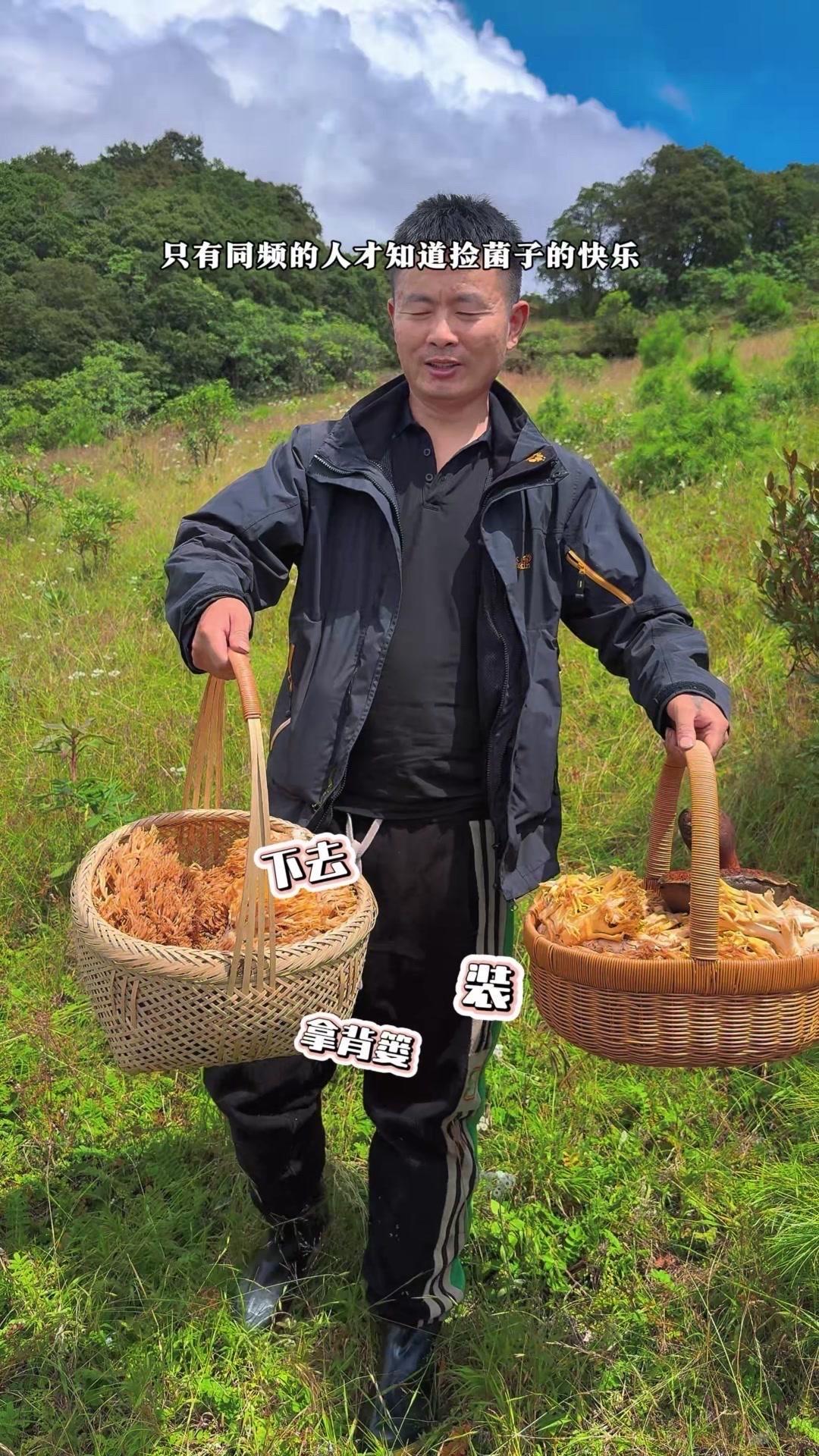 🍄只有同频的人,才会懂在山林里蹲到野生菌的狂喜!那种拨开草丛发现惊喜的瞬间,比登顶看风景还让人满足~ 看这朵菌子,足足有两斤重,伞盖撑开像小伞一样,肉乎乎的特别厚实!要知道这可是可遇不可求的宝藏,同频的人肯定懂这种“寻宝”成功的开心~ 装菌的背篓都快满了,沉甸甸的都是收获。这种在自然里探索,收获满满的感觉,大概只有真正喜欢山野的人才能体会吧~