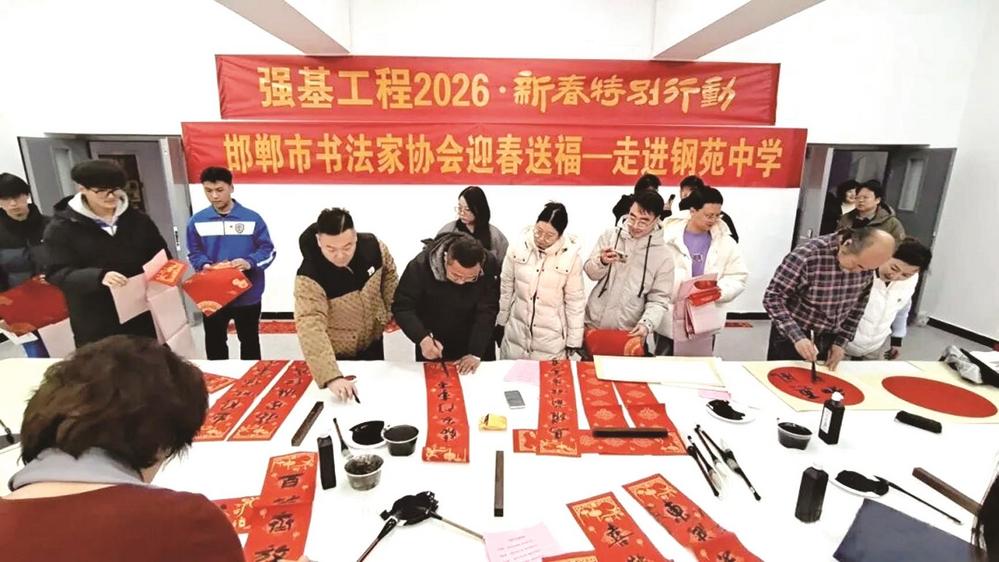 为弘扬中华优秀传统文化,给校园增添一抹浓厚的“文化年味”,1月13日下午,邯郸市书法家协会“强基工程2026”新春特别行动走进钢苑中学,书法名家与钢苑师生以笔墨为媒,以书香为伴,共同见证了“书香校园”的崭新启航。