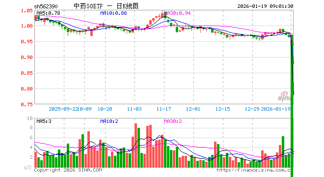 1月16日,中药50ETF(562390)跌0.62%,成交额272.70万元。当日份额增加100.00万份,最新份额为8242.90万份,近20个交易日份额增加400.00万份。最新资产净值计算值为7964.29万元。