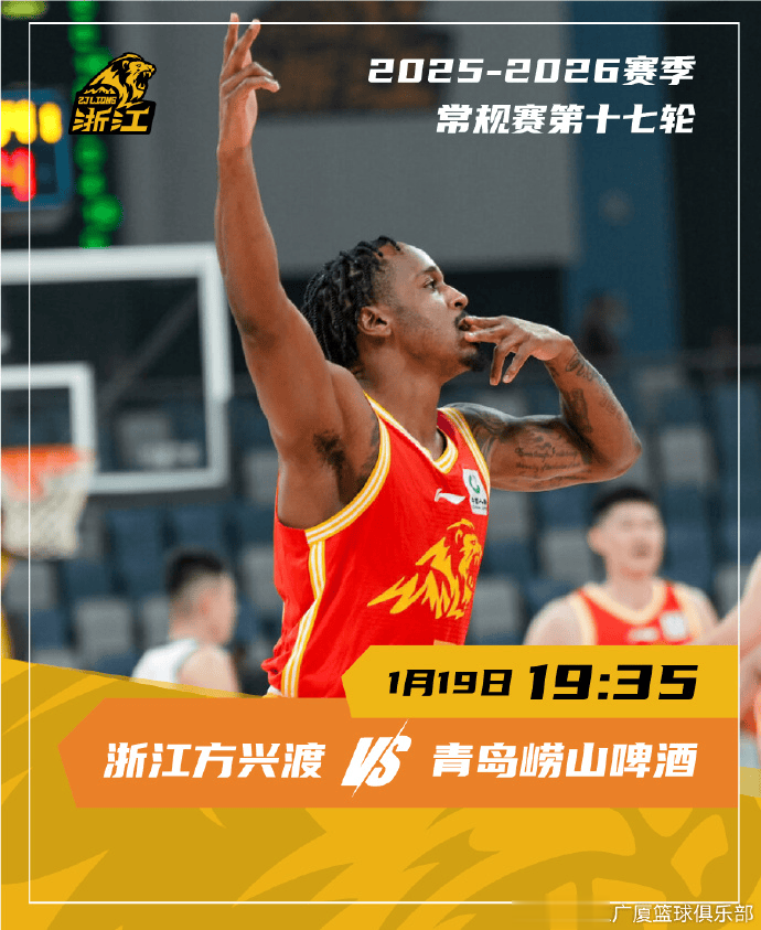 虎扑01月19日讯今日CBA常规赛:广厦男篮将对阵青岛男篮。