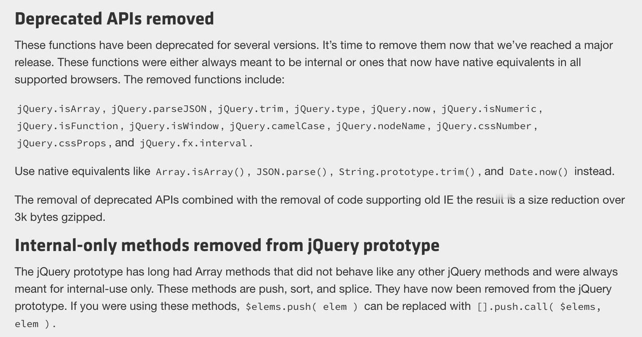 你敢相信,2026年jQuery 4.0.0版本居然GA了。。 2026年1月17号,jQuery 4.0.0 版本正式发布了,这次发布主要聚焦于精简、安全、性能与现代化。主要更新如下: 1. jQuery 4.0 正式放弃对 Internet Explorer 11 及更早版本的支持。话说还有人用IE吗。。 2. jQuery 4.0 增加了对 Trusted Types 的支持,确保用 TrustedHTML 包装的 HTML 可以作为 jQuery 操作方法的输入,而不会违反内容安全策略指令 require-trusted-types-for。 3. jQuery source migrated to ES modules 4. 删除已弃用的 API 等等。。