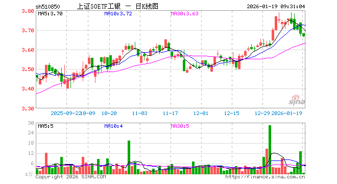上证50ETF工银(510850)开盘涨0.08%,重仓股贵州茅台跌0.01%,中国平安跌0.08%