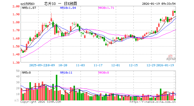 1月19日,芯片ETF景顺(159560)开盘涨0.00%,报1.935元。芯片ETF景顺(159560)重仓股方面,中芯国际开盘涨0.05%,寒武纪跌0.14%,海光信息涨0.68%,北方华创涨1.15%,澜起科技跌0.76%,兆易创新涨0.05%,中微公司涨2.25%,豪威集团涨0.00%,芯原股份涨0.00%,长电科技涨1.59%。