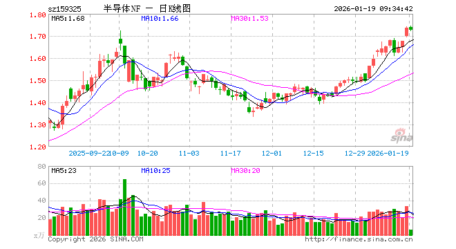 1月19日,半导体ETF南方(159325)开盘涨0.06%,报1.738元。半导体ETF南方(159325)重仓股方面,中芯国际开盘涨0.05%,寒武纪跌0.14%,海光信息涨0.68%,北方华创涨1.15%,澜起科技跌0.76%,兆易创新涨0.05%,中微公司涨2.25%,豪威集团涨0.00%,长电科技涨1.59%,紫光国微跌1.20%。