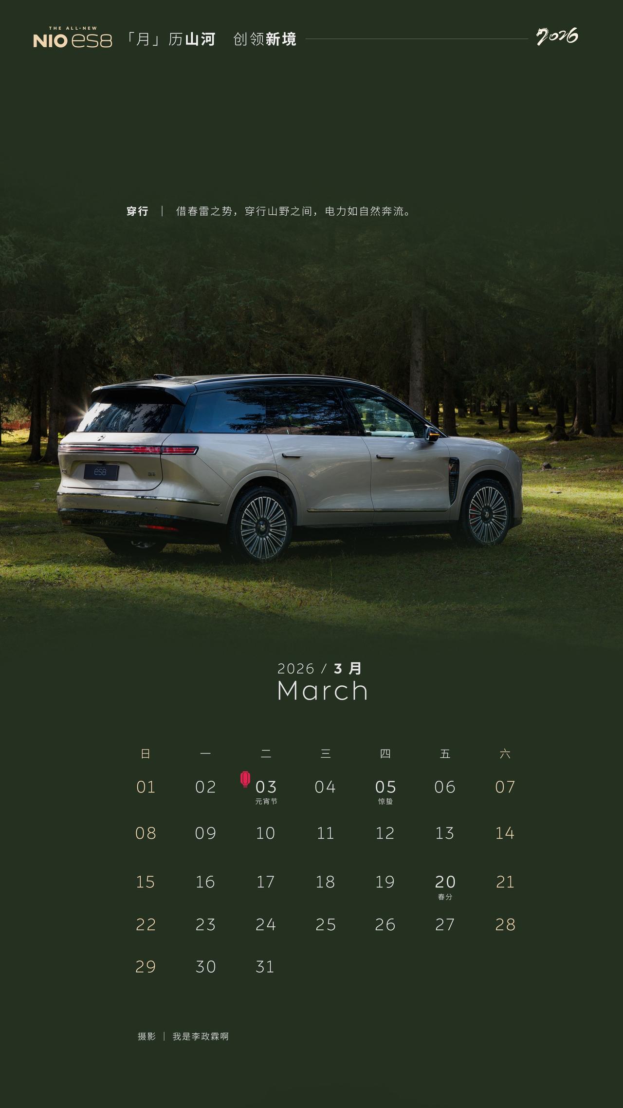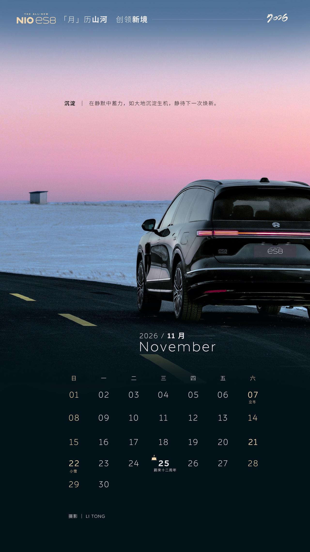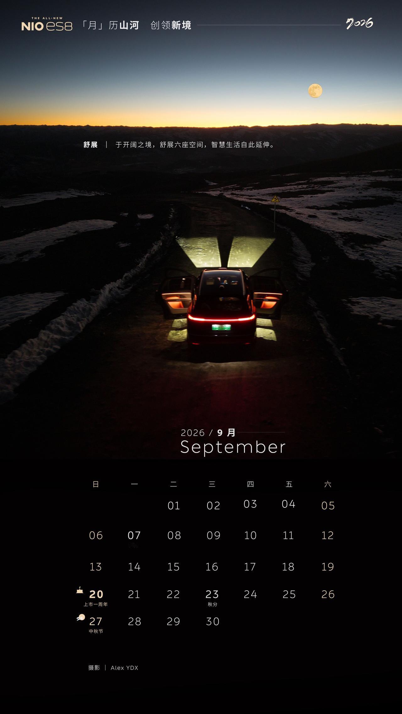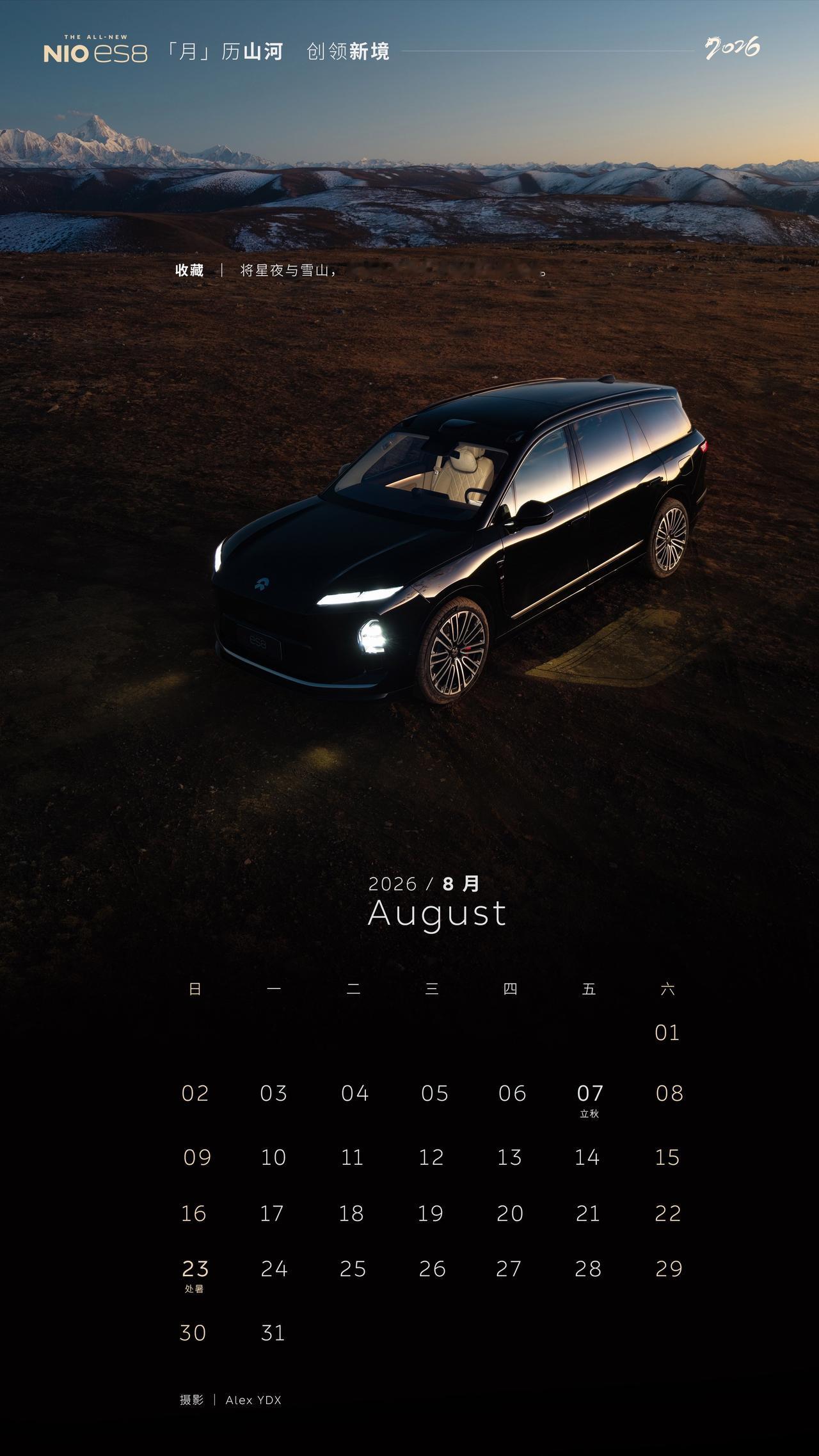 1.18日,全新ES8 交付破5万, 特此以全新ES8为底色 为大家准备了26年的月历! 欢迎大家使用。 也相信与祝福接下来的每一个月, 都有1-2个好日子好数字, 是属于ES8的 Happy Day! 销量破N万,不懂的创造惊喜。 最后要感谢车友&摄影师: @AlexYDX @黄大宝 @李政霖 拍摄的美美照片。 挡不住的颜值 拍车仪式感 我与汽车的日常 蔚来全新es8
