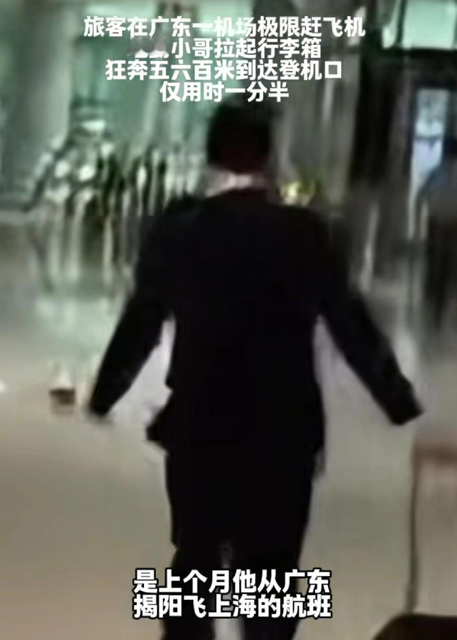 广东揭阳机场,一名游客到达机场时,地勤人员发现其与登机时间已经所剩无几的时间,于是帮忙拉着行李箱狂奔600米,顺利到达登机口,整个过程只用了一分半的时间,据说在有乘客是从揭阳。去往上海的飞机。也有网友指出,这么热心的地勤人员还是少见,有很多游客到达机场之后不少的工作的人员,摆渡车要求他们坐上登机口。虽然最终都能准时到达登机口,但是整个过程需要收费,而且费用还不低。