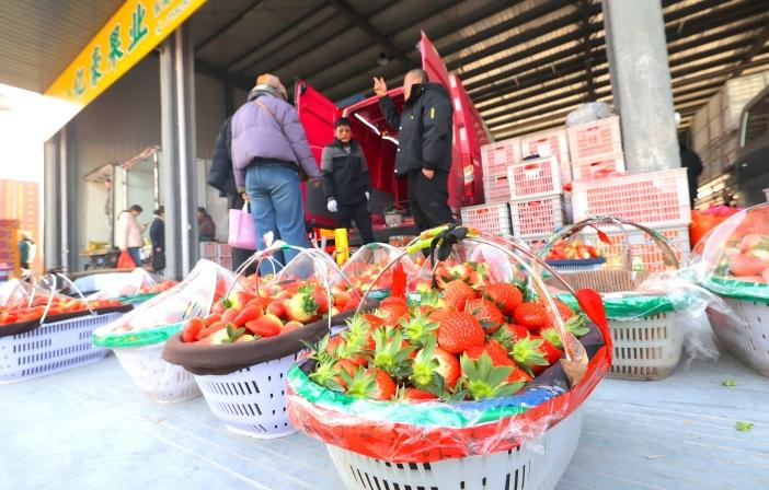 1月16日,鲁南智慧物流园果品交易中心内,运送新鲜水果的车辆繁忙地往来穿梭,客商和市民们认真选购心仪的水果。当天,鲁南智慧物流园果品交易中心开业暨首届果品年货节启动,为枣庄人奉上“舌尖上的美味”,繁荣活跃春节消费市场。