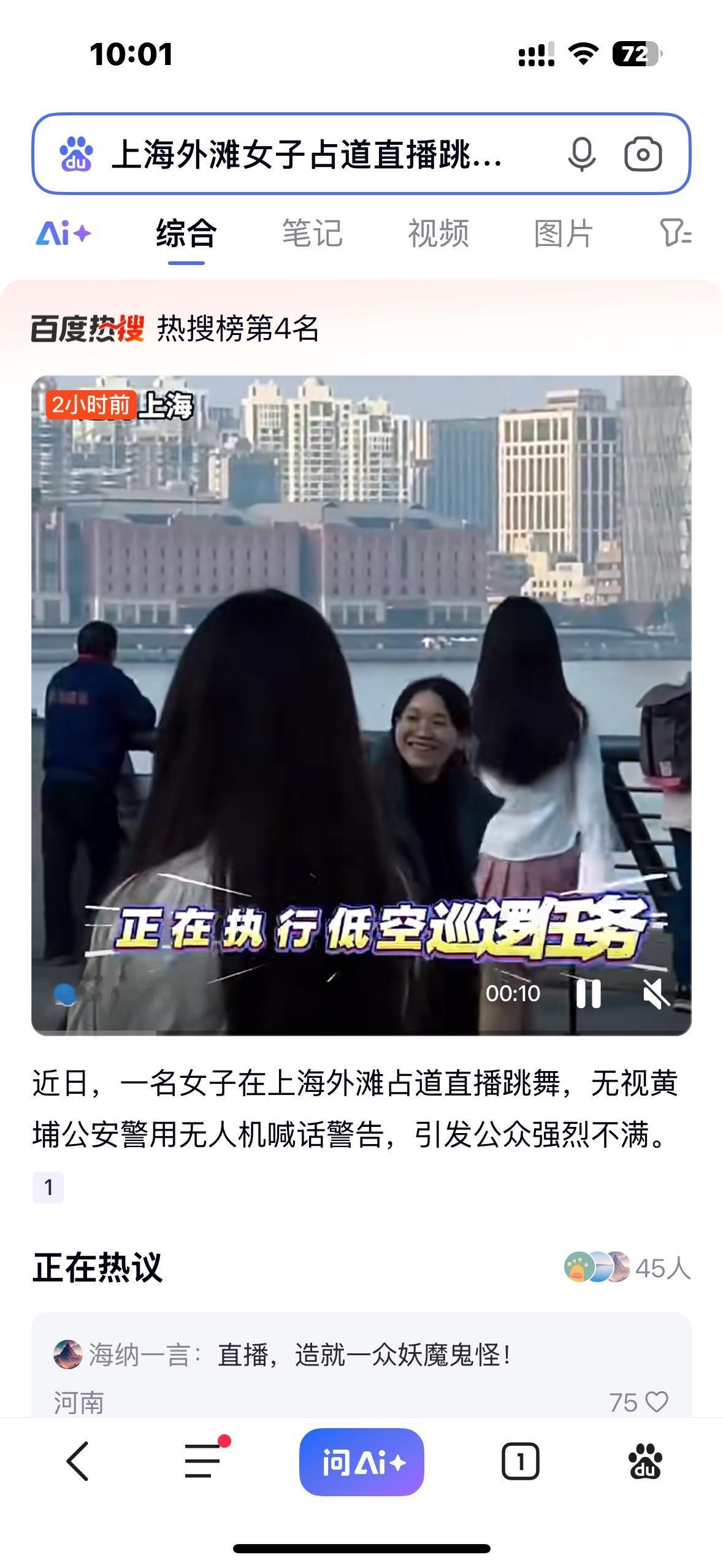 近日,一名女子在上海外滩占道直播跳舞,面对黄浦公安警用无人机的多次喊话警告,依旧置若罔闻,这一行为引发了公众的强烈不满。