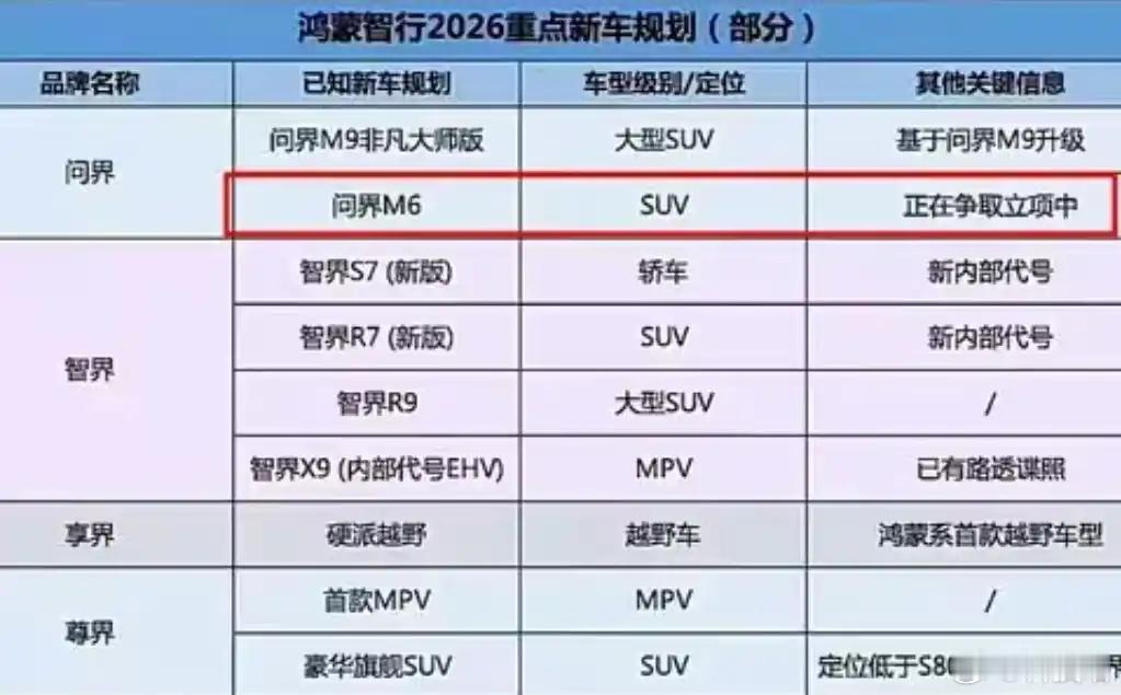 问界M6可能快来了?现在问界有M5,M7,M8,M9,就差一款M6了,M6新车上
