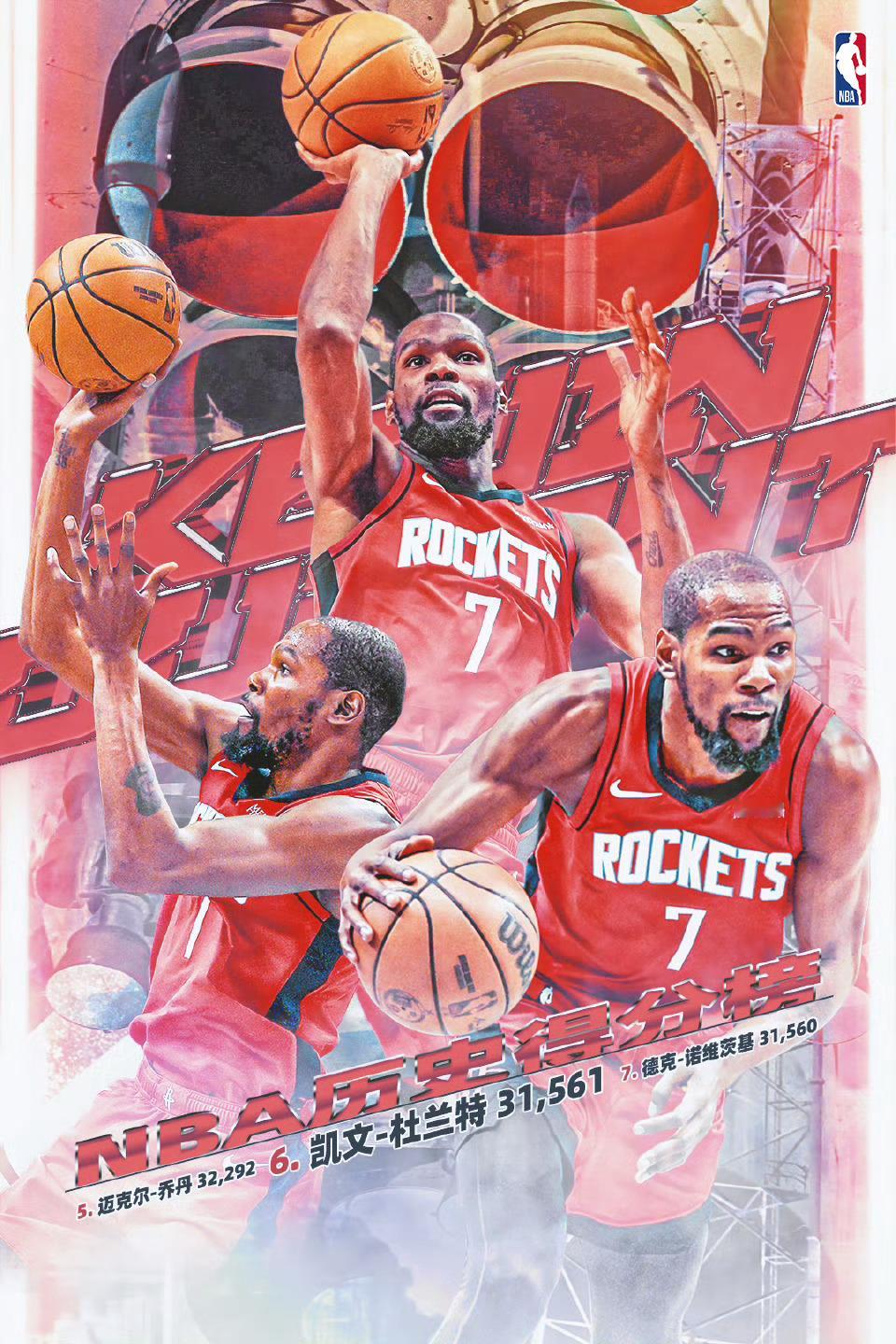 恭喜杜兰特总得分超越诺维茨基升至历史第六,里程碑时刻➕球队赢球!杜兰特升至历史得分榜第6位火箭战胜鹈鹕
