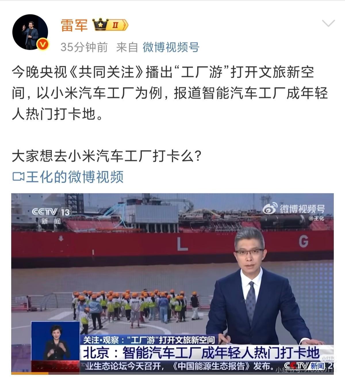 雷军回应央视报道小米汽车工业旅游排面拉满,北京工业旅游顶流!