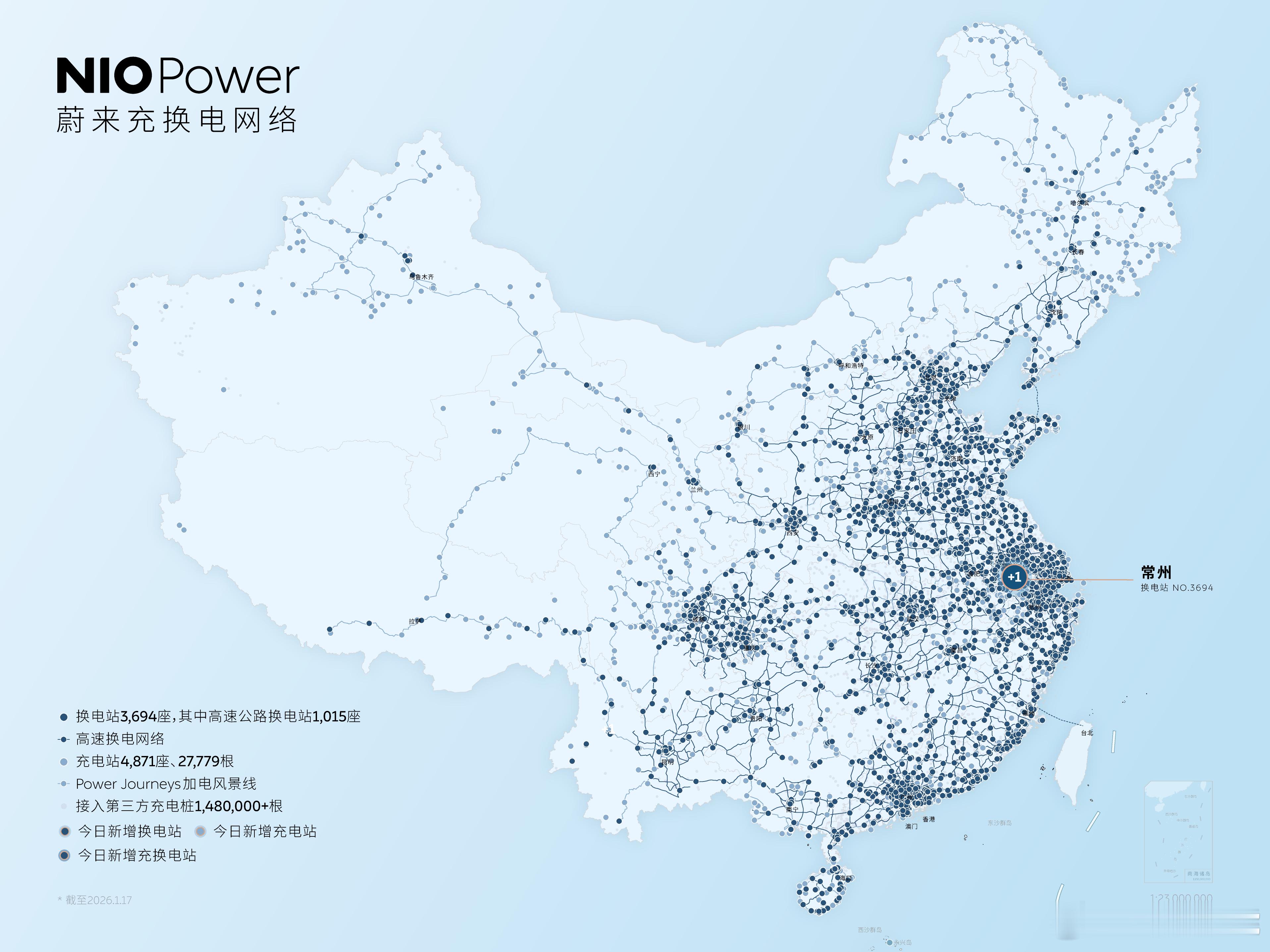1月17日 NIO Power 今日上线NO.3694 蔚来换电站 | G401