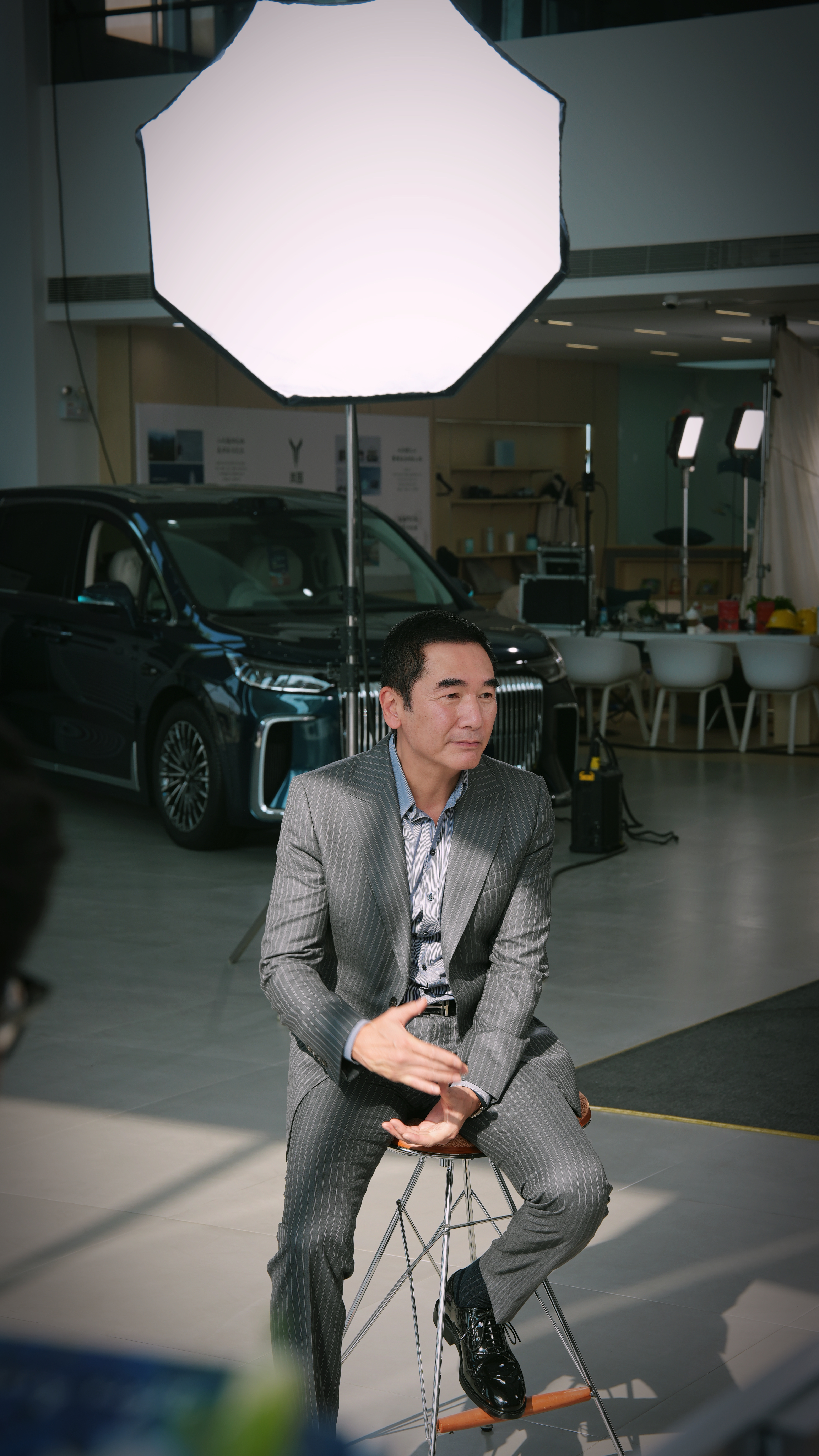 方中信下单了岚图泰山,刚好我现场当了一次场记,其中发生了个很有意思的小事儿,面对采访,他讲普通话,面对很多人,他因为怕自己讲不好,大家怪他,所以,紧张程度就增加了,深圳当天户外28度,巨热,大概半个小时的采访,他擦汗了不下10次,衣服都湿完了,相当敬业!后来听说可以讲粤语,开心的不行!这样他就不怕讲错了,63岁了,还开心的像老小孩,且基本上不用怎么上妆,就是大家看到的状态,好奇,港星都咋保养的(图9是现场小风扇吹,也没啥用)