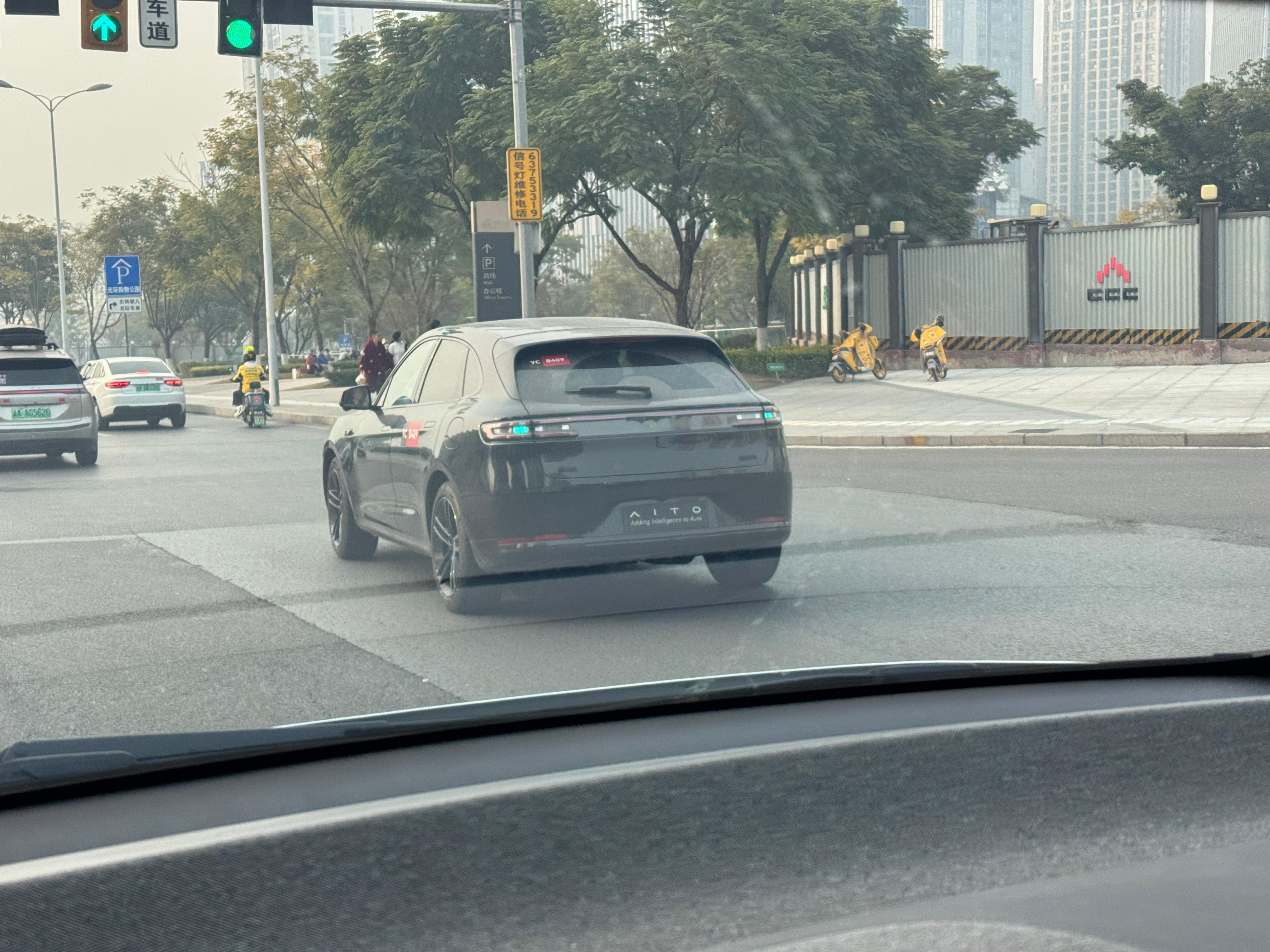 路遇点亮小蓝灯的问界M5看它的内部测试车编号,应该可以排除用户DIY 的可能性老