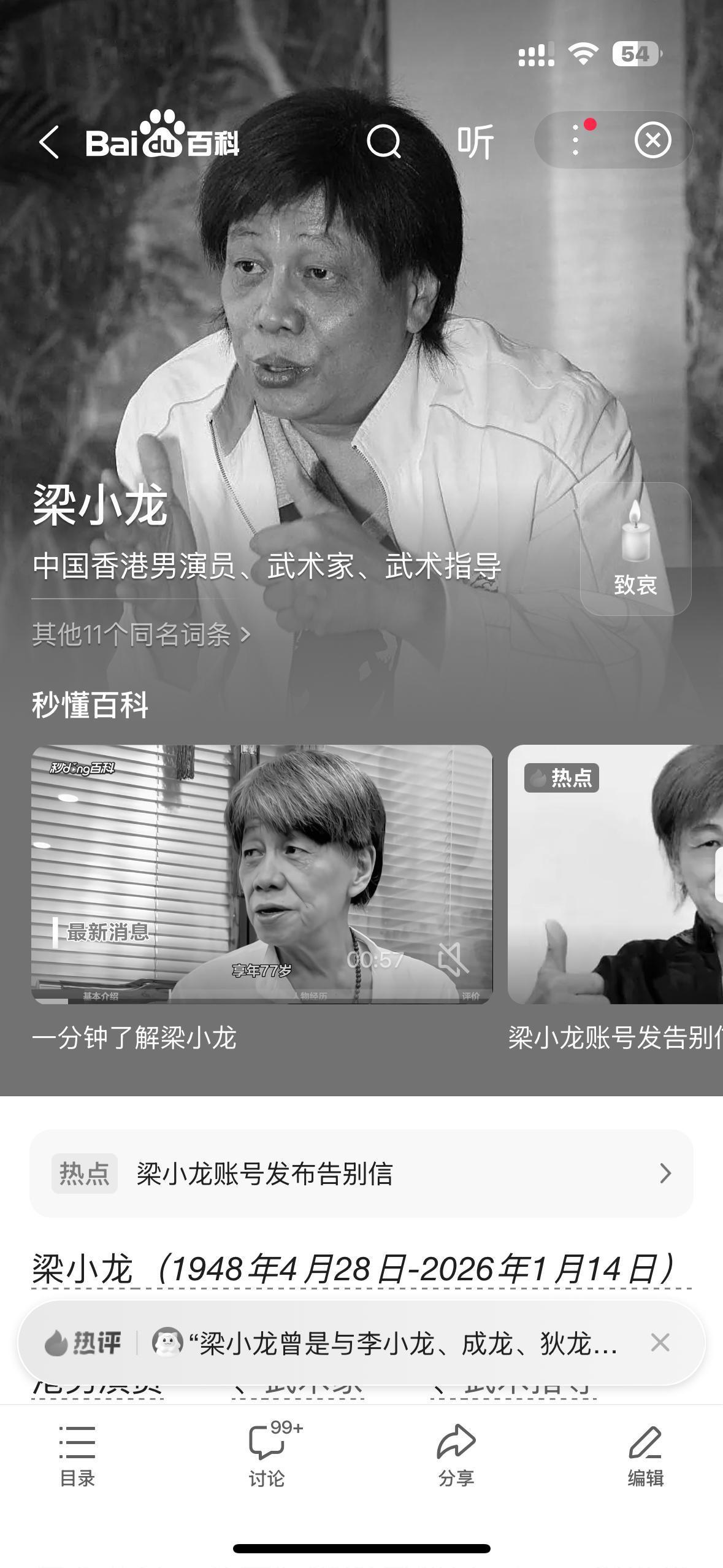 1月18日晚,梁小龙社媒账号发布告别信:请原谅我不辞而别,就当我到很远的地方拍电影去了,本想保密的,所以关门弟子像往常一样发视频,我喜欢有点神秘感,你们替我好好活着,爱一直在,记住我爱你们——梁小龙,2026年1月14日。