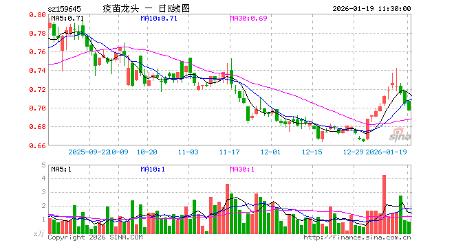 1月19日,截止午间收盘,疫苗ETF富国(159645)跌0.99%,报0.697元,成交额57.17万元。疫苗ETF富国(159645)重仓股方面,长春高新截止午盘跌1.08%,复星医药跌0.58%,智飞生物跌6.45%,万泰生物跌1.62%,沃森生物跌1.16%,华兰生物涨0.79%,药明康德跌2.77%,昭衍新药跌1.57%,丽珠集团涨0.08%,恒瑞医药跌1.03%。